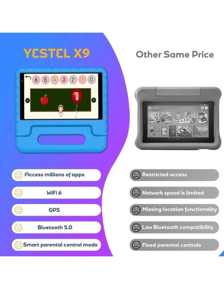 - Modalità di controllo bambino: il tablet J8 per bambini è dotato della modalità di controllo genitori senior e i genitori possono impostare il contenuto di navigazione e filtrare la navigazione impostando il dispositivo. Offri a tuo figlio un ambiente di rete sicuro. Puoi anche controllare l'uso dei tablet da parte di tuo figlio in qualsiasi momento. Questo è un buon aiuto nella gestione dei dispositivi elettronici.