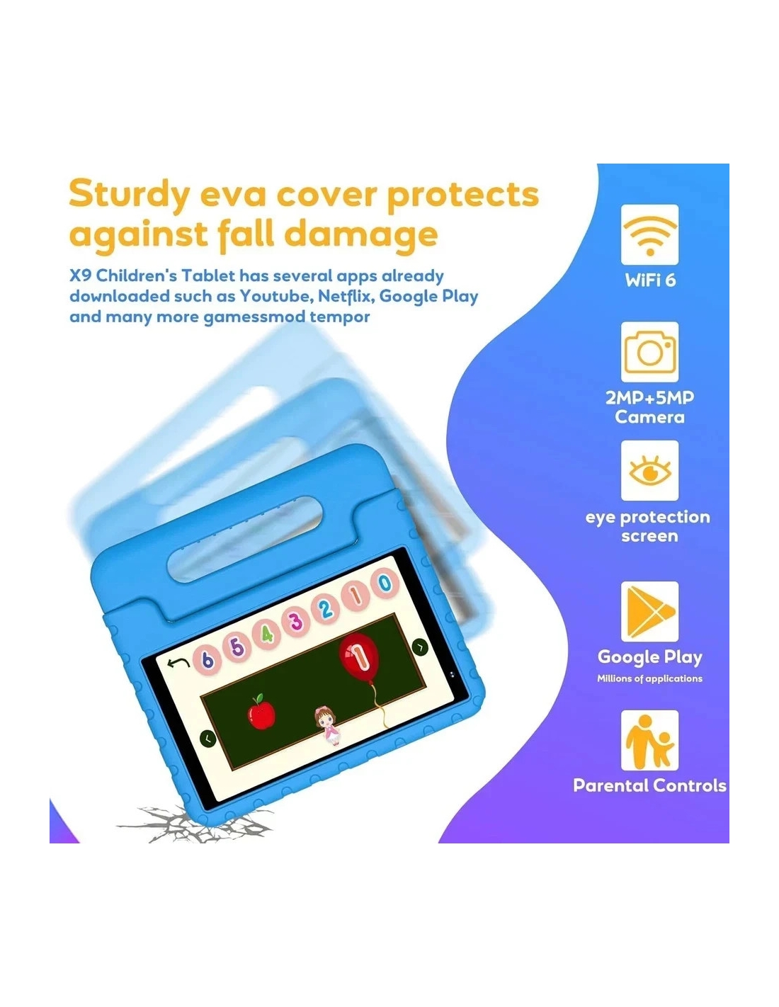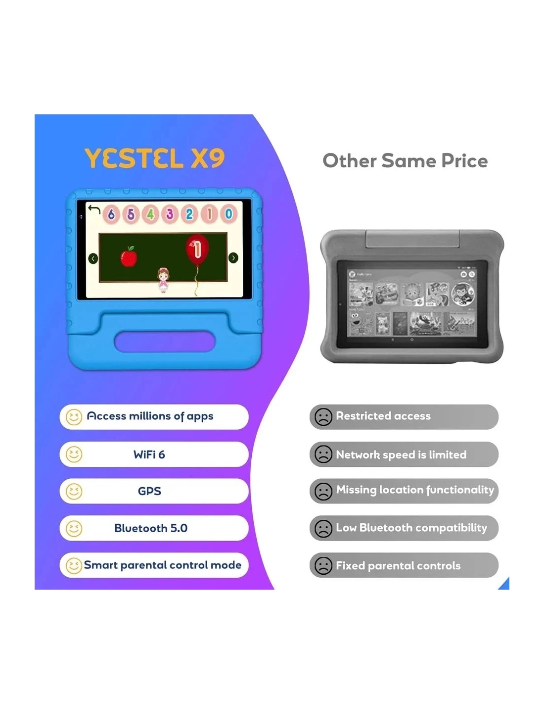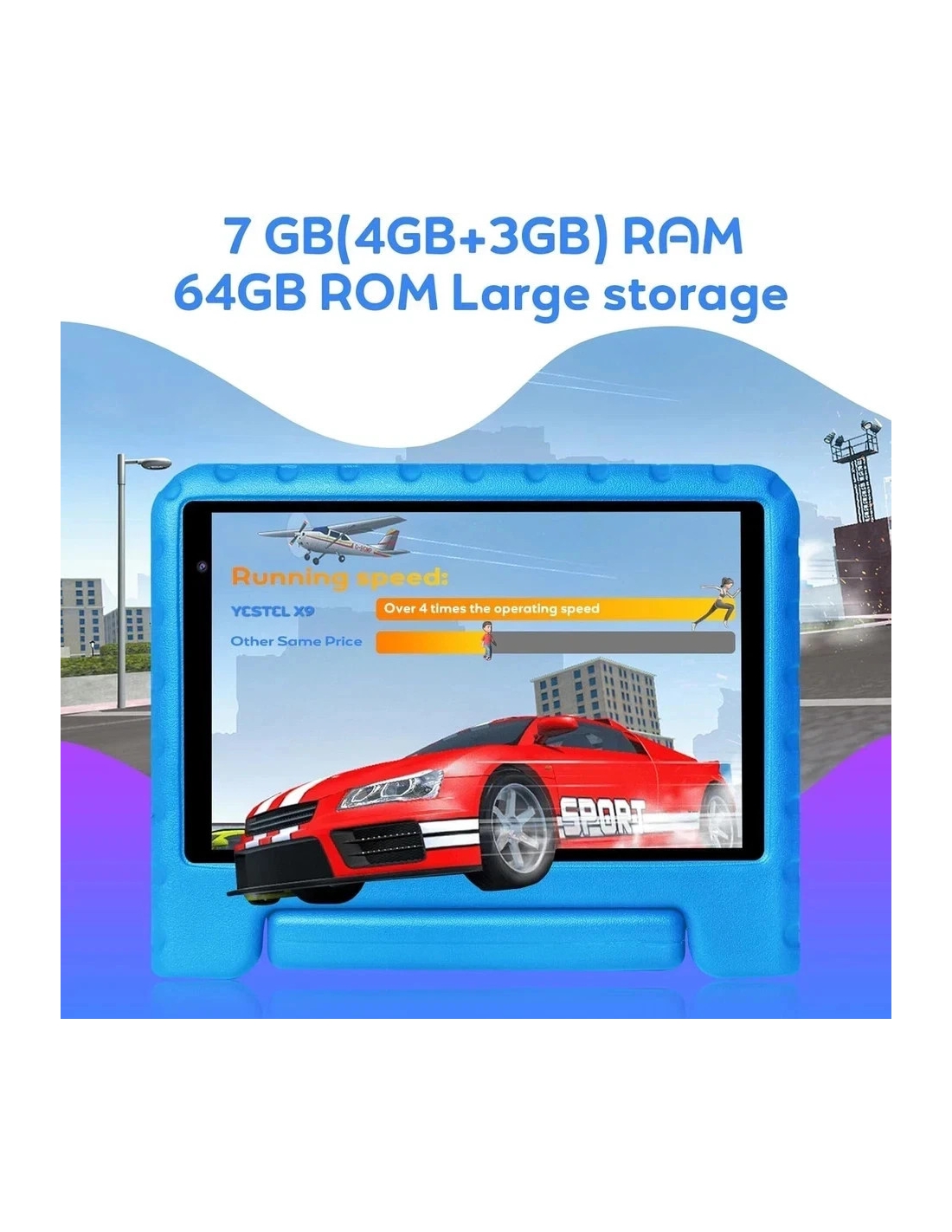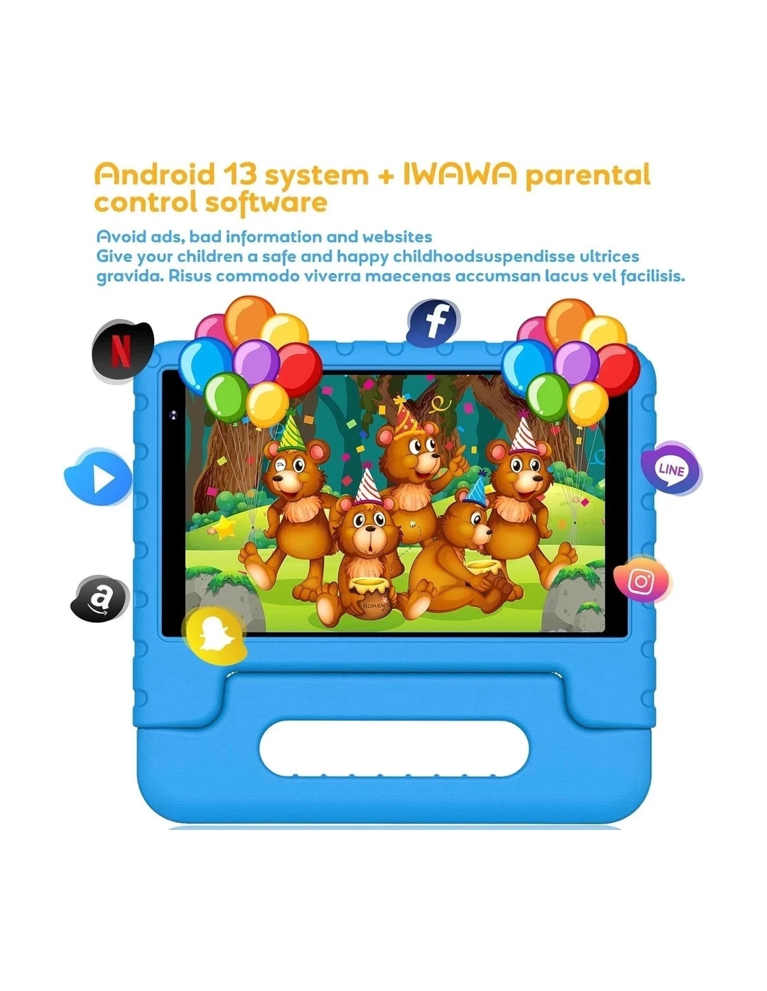 JUSYEA J8 Tablet bambini 64GB ROM 7" FHD Android 11 Pad WiFi Fotocamera nero Custodia BLU