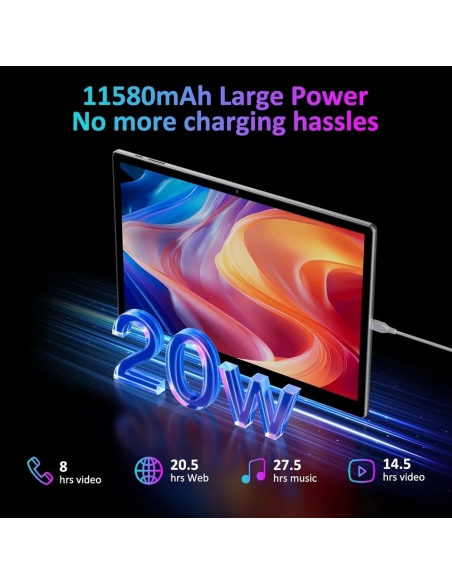 • 🔋11580 mAh Batteria Massiccia+ 20 W Ricarica Rapida🔋Alimentato dal sistema operativo Android 14 con un processore octa-core da 2,0 GHz,BEYNIVAN tablet 14 pollici è dotato di un'enorme batteria da 11.580 mAh che offre fino a 780 ore di standby, 12 ore di gioco e 16 ore di videochiamata. Grazie alla tecnologia di ricarica rapida da 20 W,è possibile ricaricare la batteria in poco tempo, rimanendo con voi al lavoro o per giocare tutto il giorno.