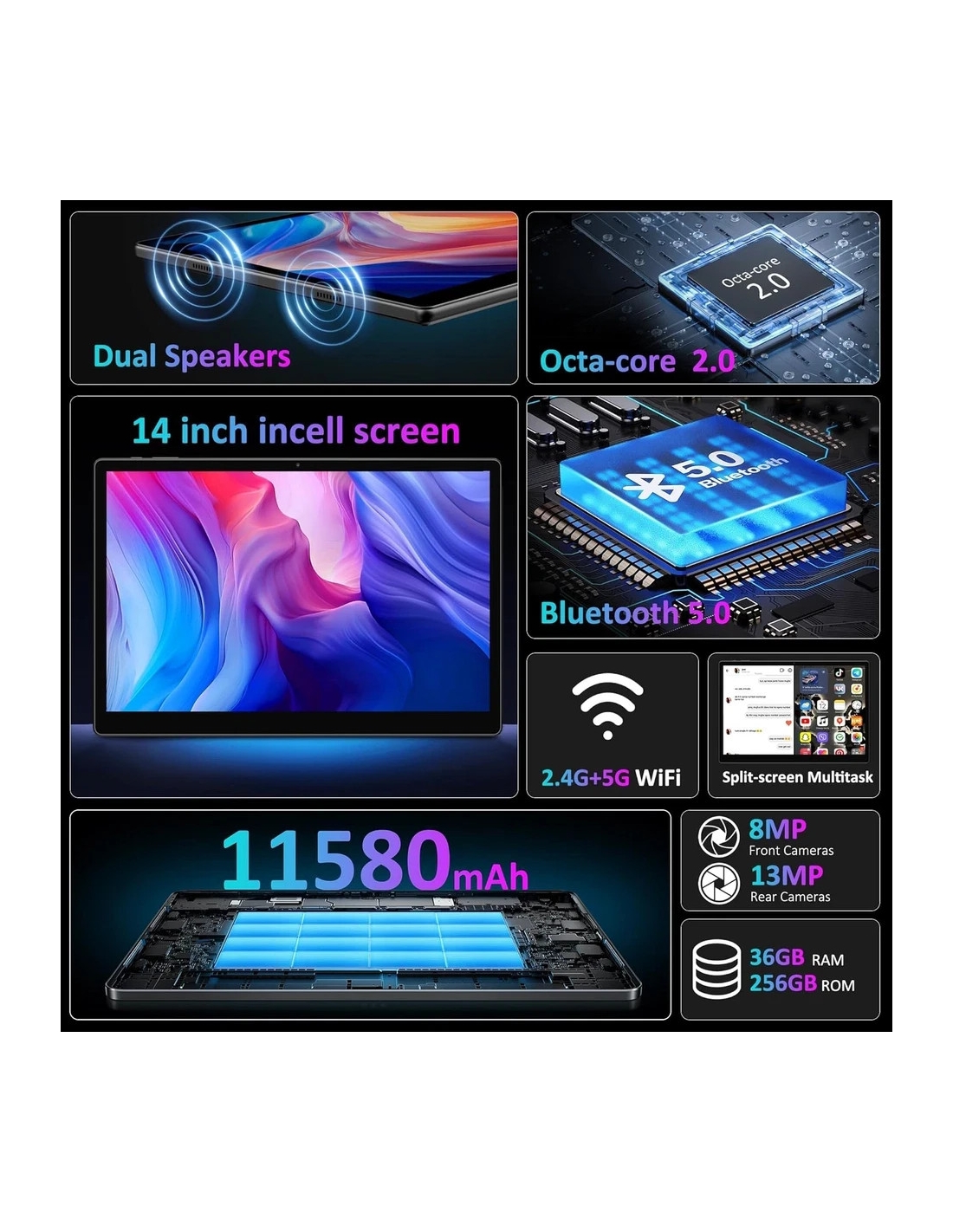 BEYNIVAN T181 Tablet 14 Pollici 5G Wifi, Android 14 Tablet 36GB RAM+256GB Rom,20W/11580Mah