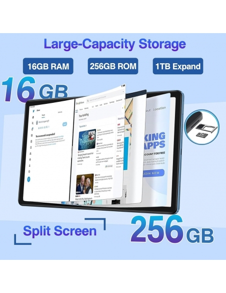 - 🚀 16 GB RAM + 256 GB ROM: il tablet ha fino a 16 GB (8 GB+8 GB) di memoria di lavoro, combinata con un processore a 8 core più stabile con una frequenza principale fino a 2,0 GHz, che migliora la velocità di avvio dell'applicazione e offre agli utenti un eccellente esperienza multi-tasking, ROM integrata da 256 GB, supporta spazio espandibile sulla scheda MicroSD da 1 TB, puoi scaricare e archiviare più applicazioni a piacimento.