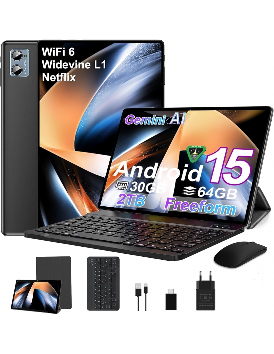 SUAAT S3 Tablet Android 14 10 Pollici 20GB RAM+128GB ROM(1TB TF),Octa-Core, WIFI 6,1.8Ghz,BT5.0, GMS, 8MP + 5MP, Type-C, OTG, Cast, Tablet PC con Custodia, Tastiera e Mouse, Nero Intenso