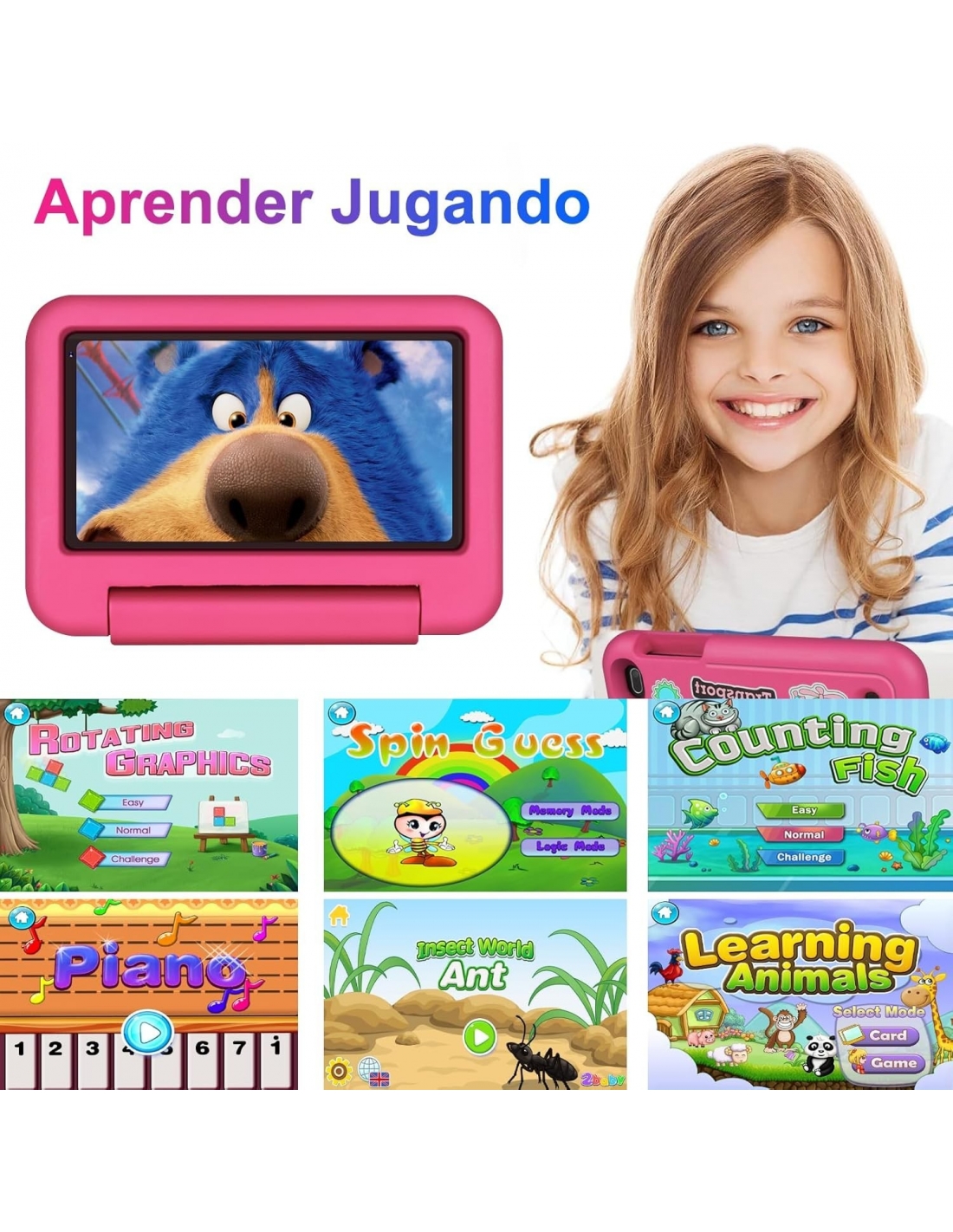SEBBE S21 Tablet bambini Android 13 Kids Tablet 7" Quad Core 7 GB RAM+64 GB ROSA