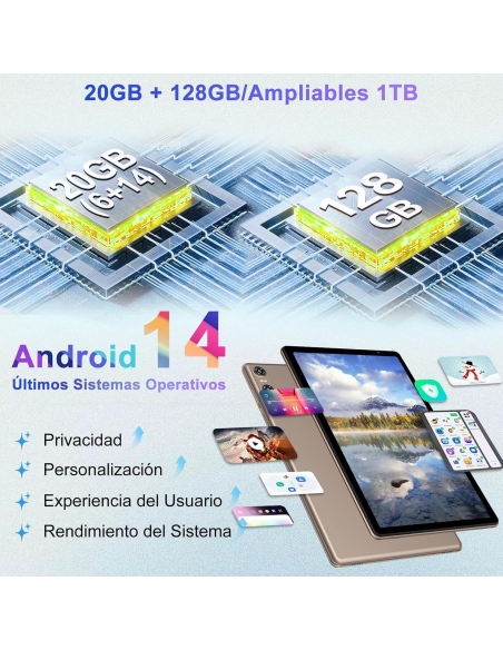 - 【20GB(6+14) RAM + 128GB ROM + 1TB Espandibile】Tablet 10 pollici fornisce 20GB RAM (6GB RAM + 14GB RAM espandibile memoria)Offre spazio di archiviazione sufficiente per operazioni fluide e consente un multitasking veloce e senza latenza.Questo tablet ha 128 GB di memoria di archiviazione e supporta fino a 1TB schede di espansione Micro SD/TF, in grado di memorizzare giochi di grandi dimensioni e opere audiovisive.