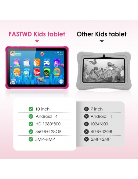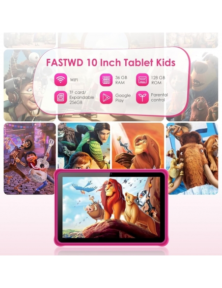 FASTWD L211 Tablet per bambini Android 14 36GB RAM+128GB ROM(espandibile con SD),WiFi 6,controllo genitori,Widevine L1/BT 5.0/8+5 MP/Tablet per Bambini, (Rosa)