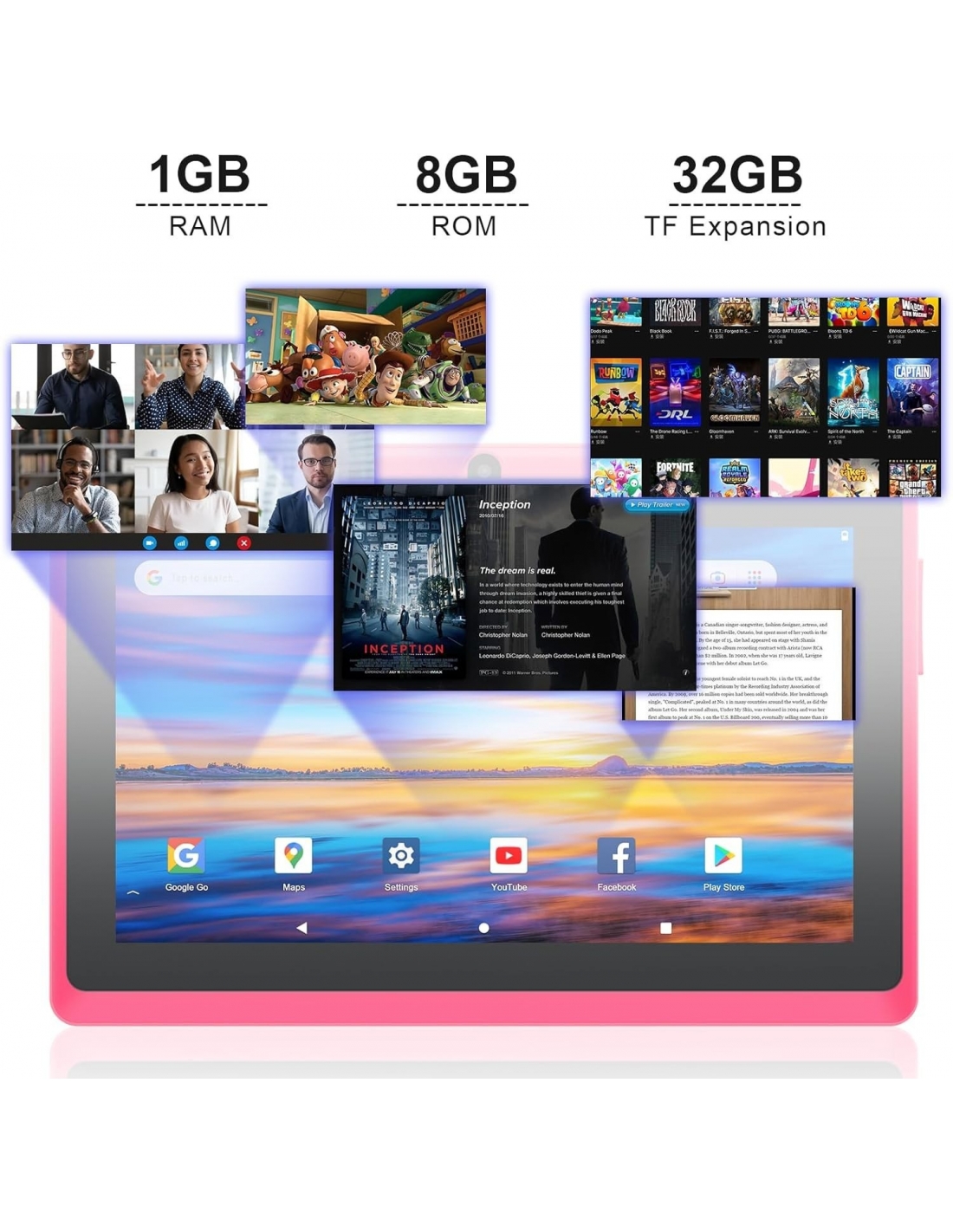 MEDIATEK ZLQ5 Tablet 7 Pollici Android, Doppia Fotocamera, WiFi, Bluetooth, Rosa