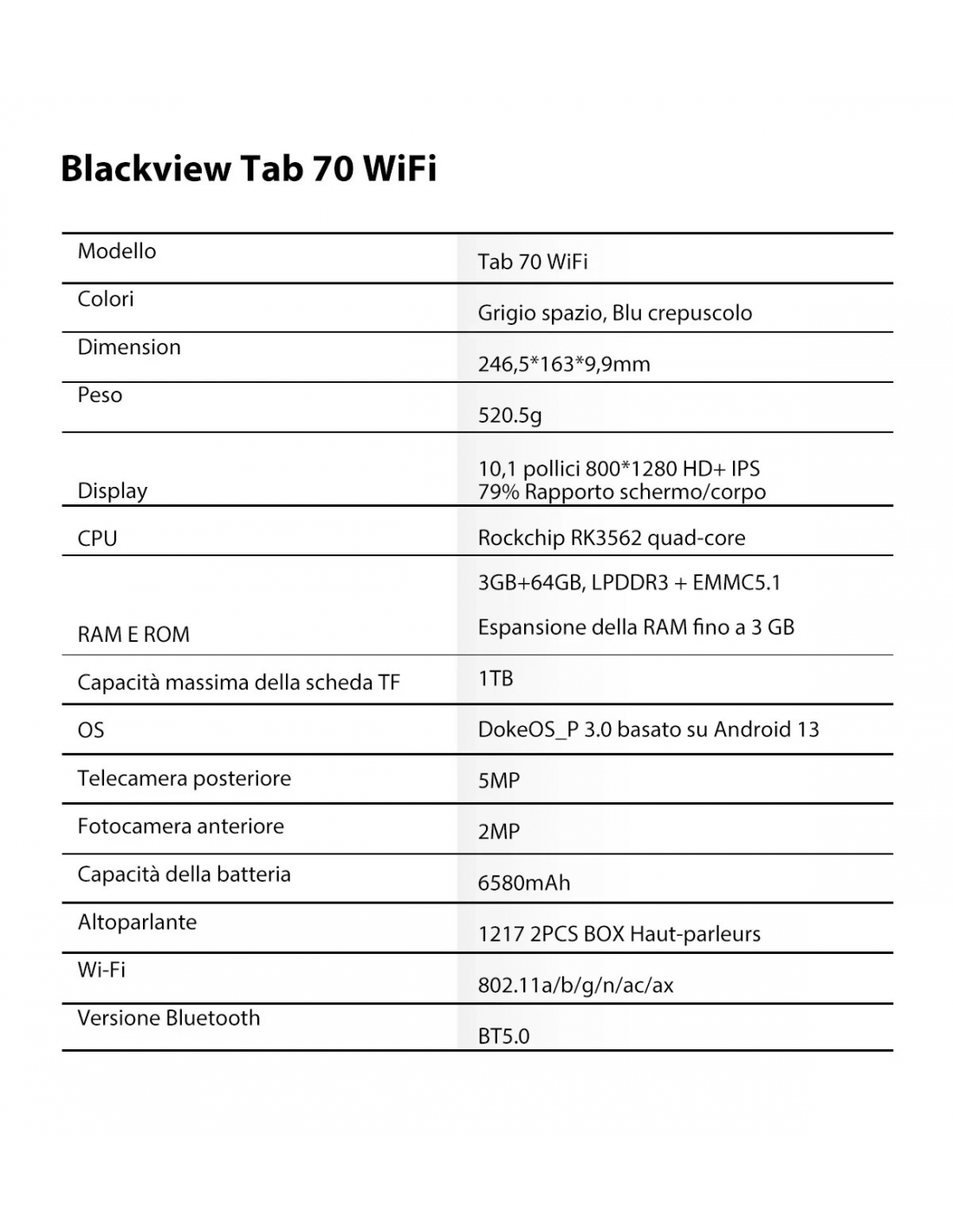 Blackview Tab 70 WIFI Tablet PC Android Widevine L1 da 10,1 " 6580 mAh Wifi 6