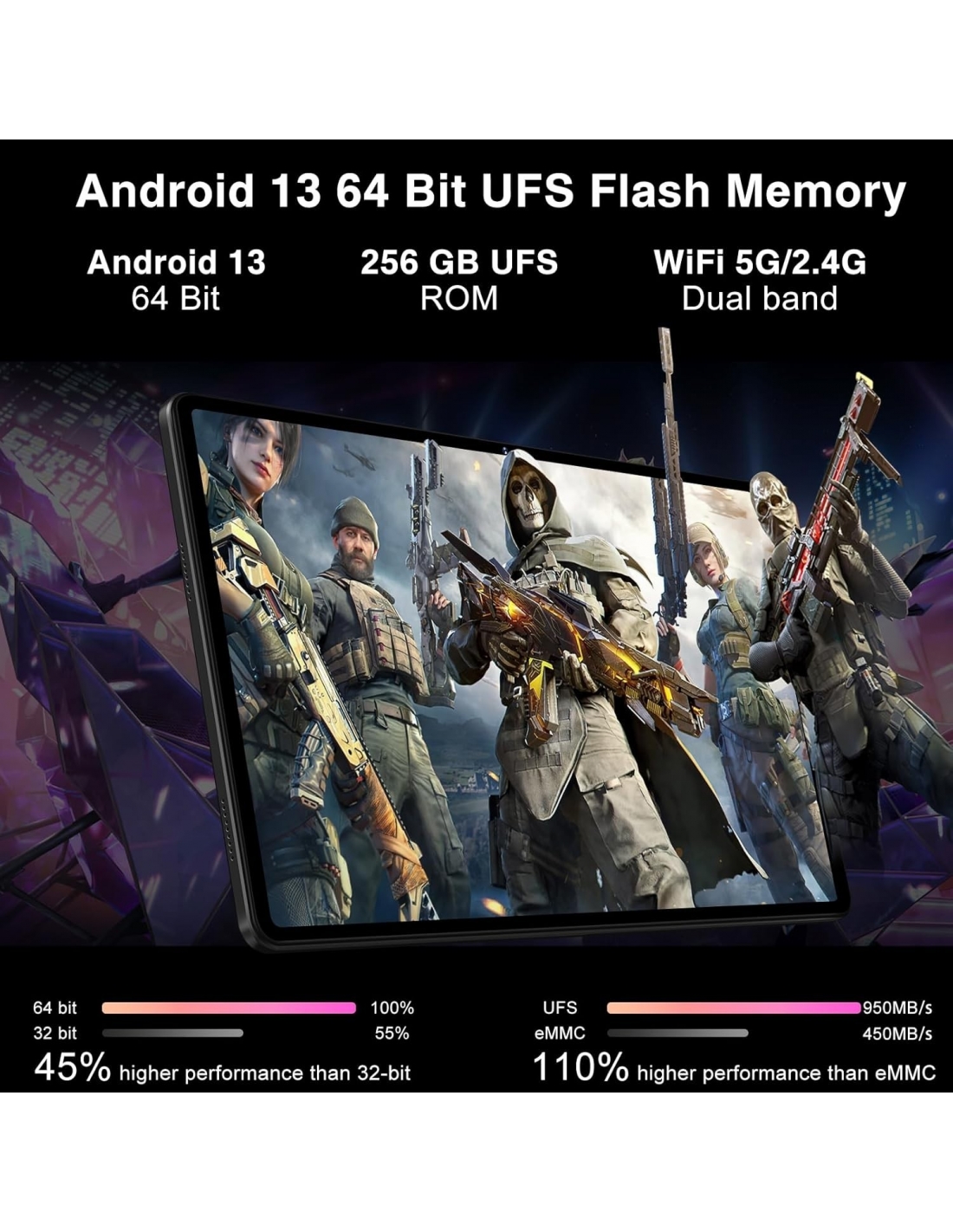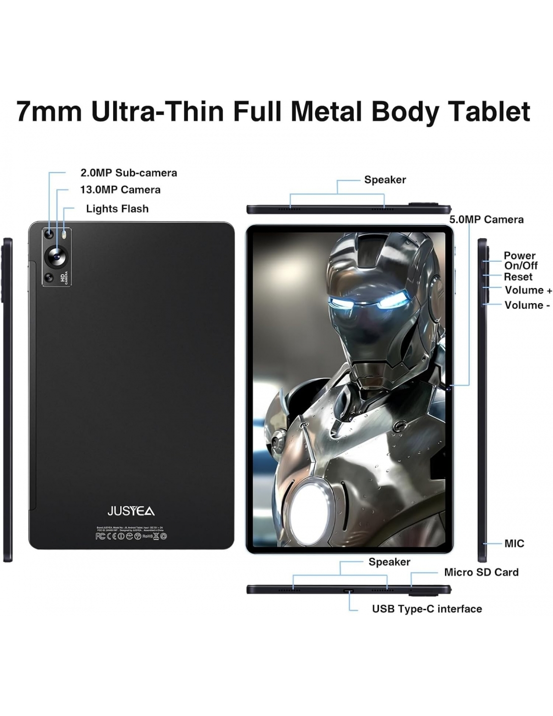 JUSYEA J9 Tablet 11 Android 13 WiFi 5G 16GB RAM 256GB ROM WiFi 6 Bluetooth NERO