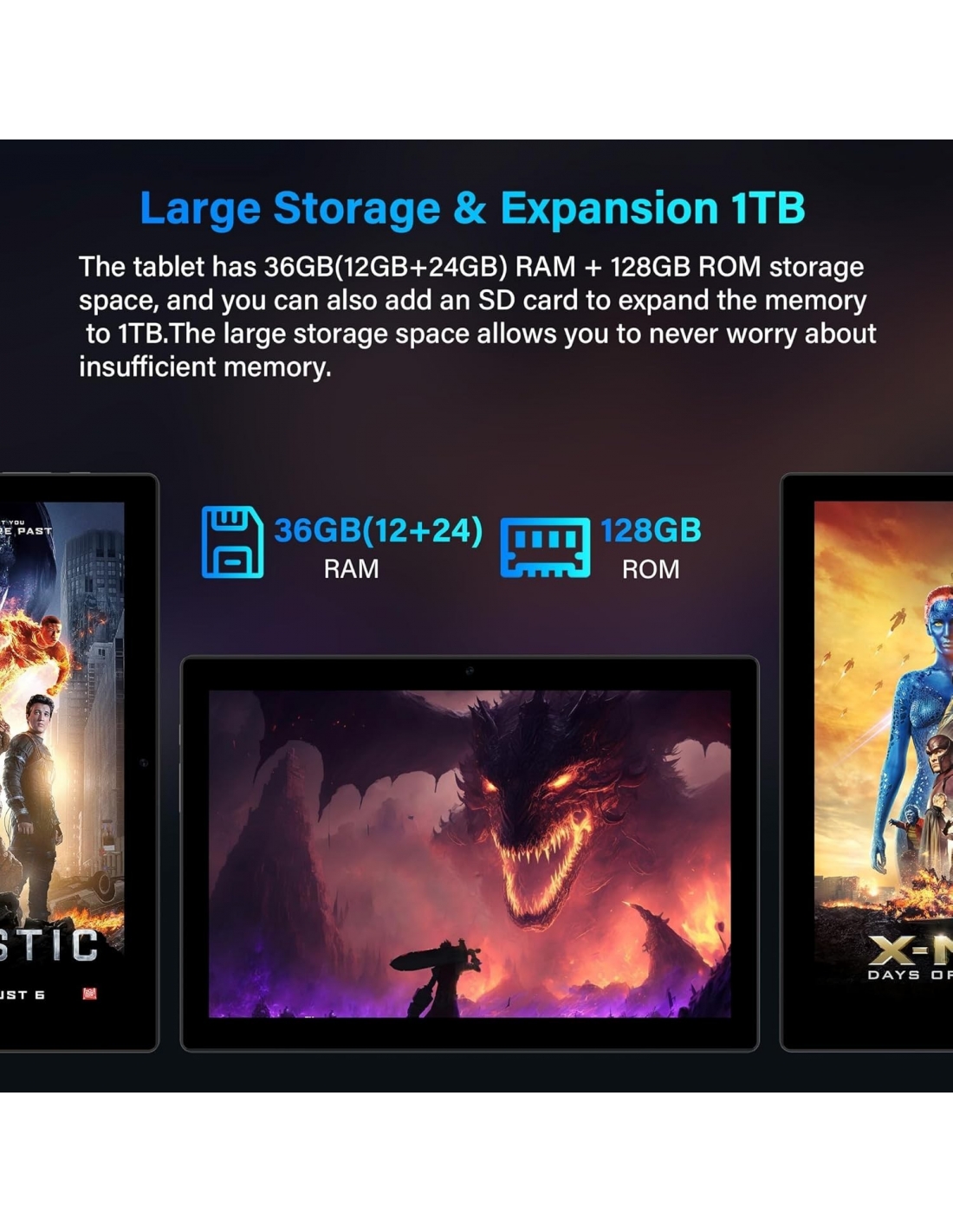 - 36 (12 + 24) GB di RAM + 128 GB di ROM + 1 TB espandibile: il tablet FORUSER offre 36 GB di RAM (12 GB di RAM + 24 GB RAM espandibile) + 128 GB di ROM e supporta fino a 1 TB di memoria Micro SD/TF per un multitasking veloce e senza ritardi. Con una capacità di archiviazione di 128 GB, questo tablet offre molto spazio per archiviare documenti, foto e video. La memoria da 36 GB assicura che le app si avviino rapidamente, garantendo un'esperienza di gioco confortevole e fluida