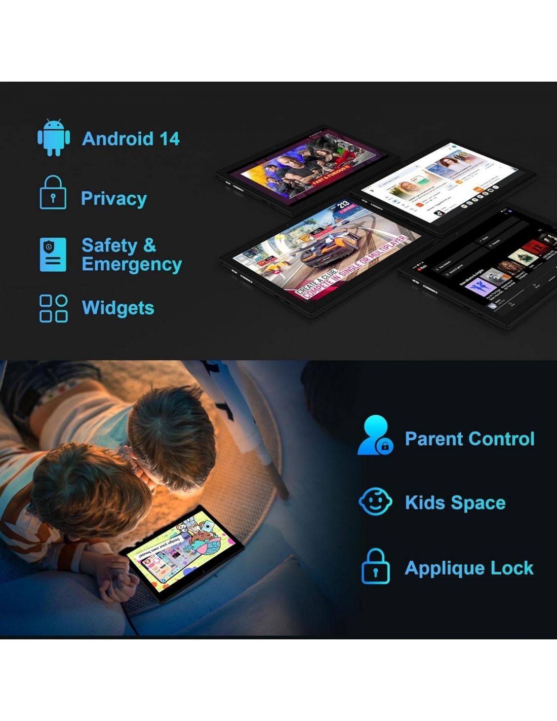 - Potente sistema Android 14: i tablet sono dotati dell'ultimo sistema operativo Android 14 potente e facile da usare.La nuova funzione di protezione dei dati protegge i tuoi dati personali. Con una visione chiara e completa del tempo, l'app può accedere alla tua posizione, fotocamera o microfono.Grazie alla semplice interfaccia e al funzionamento rapido, è possibile gestire facilmente film, immagini, video, musica e altro ancora