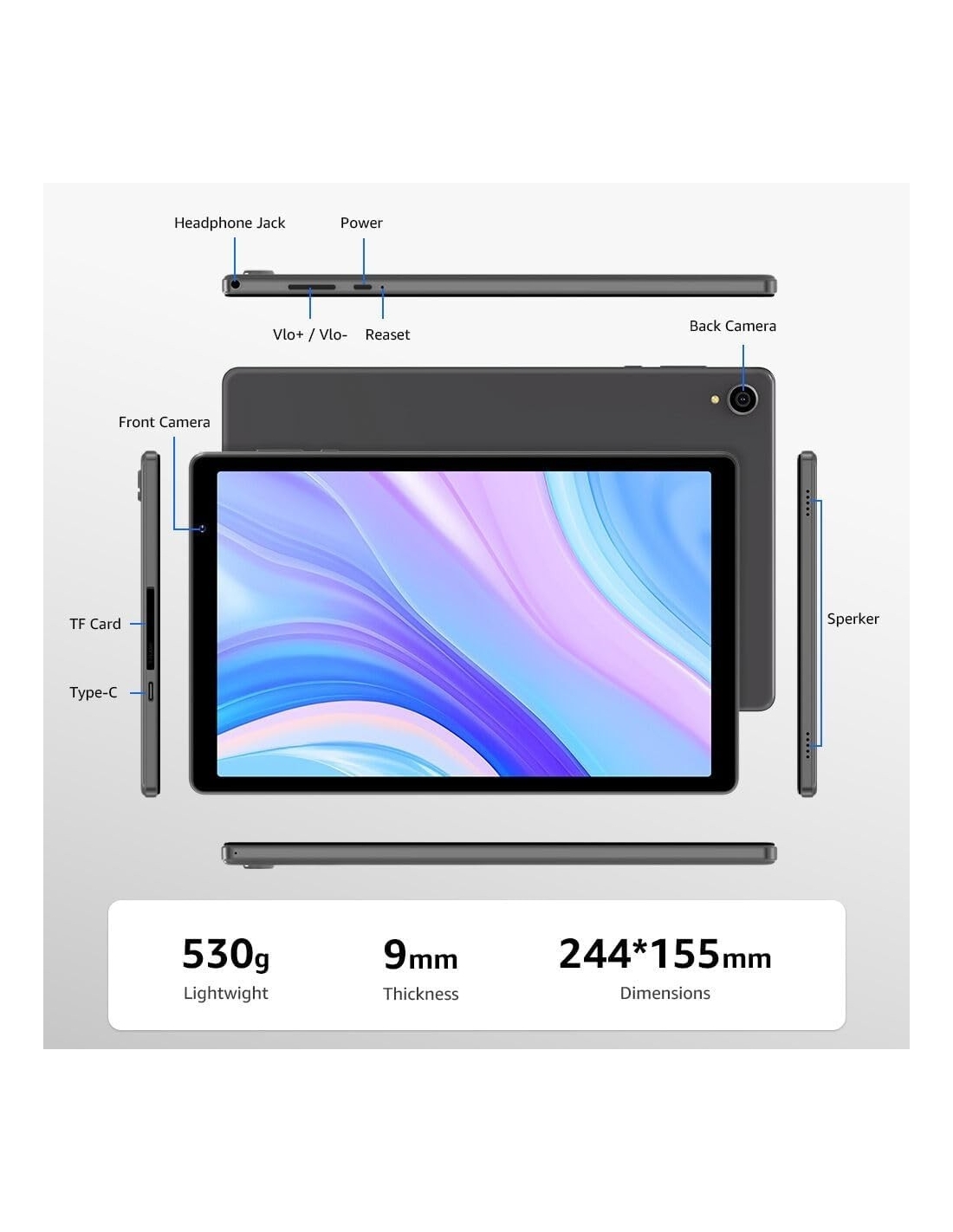 - Display da 10,1 pollici immersivo: questo display per tablet dispone di una risoluzione di 1280 x 800 (HD), che offre un'esperienza visiva vivida e chiarezza cristallina sullo spazioso schermo da 10 pollici, perfetto per intrattenimento, lavoro e navigazione.