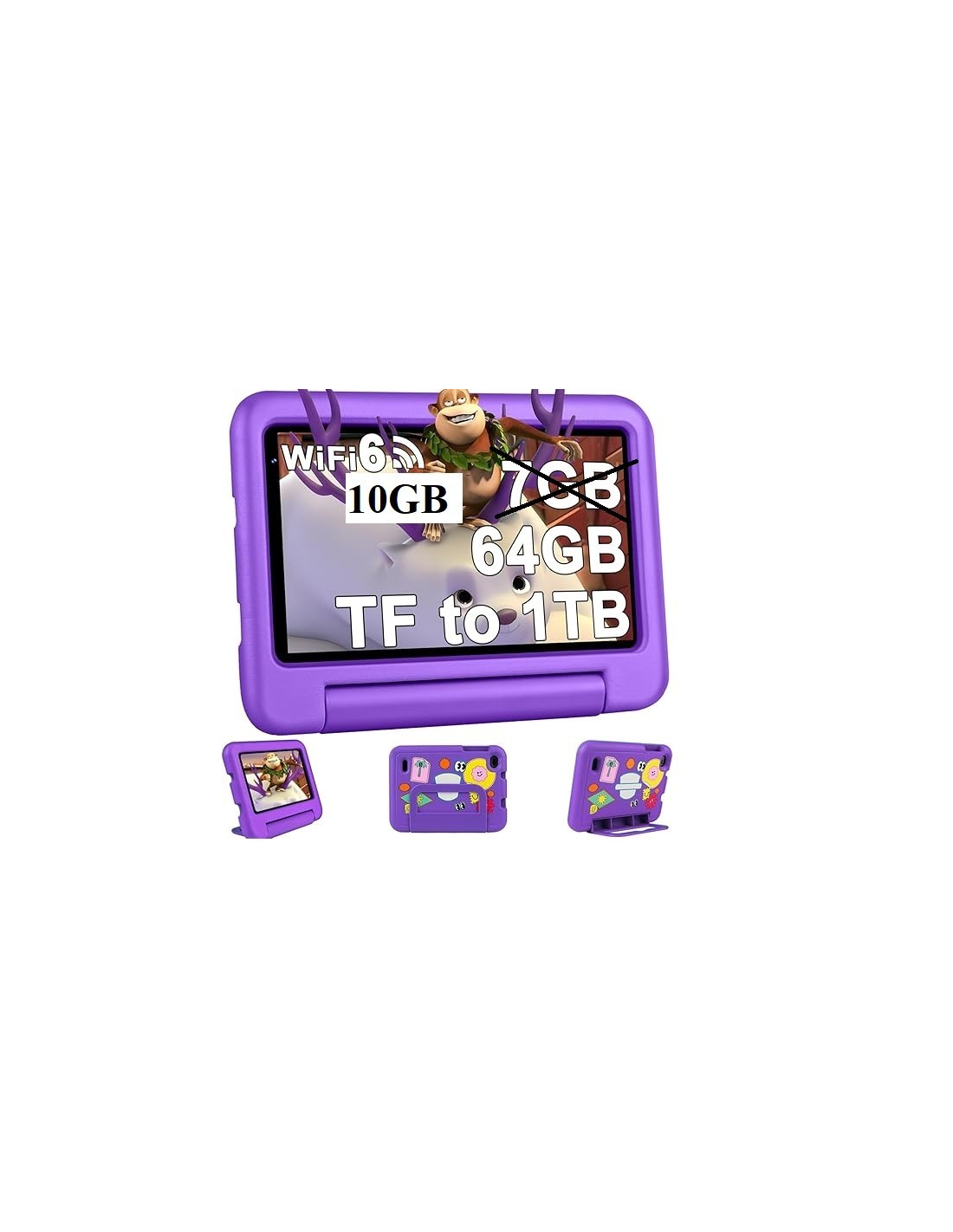 DEERTIME E10 Tablet 7" Android 13 10GB RAM (4GB+6GB)+64GB ROM con custodia Viola