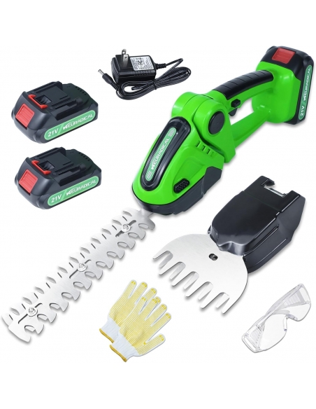 - 2. Fornito con 2 batterie ricaricabili agli ioni di litio da 1500 mAh: questo tagliasiepi elettrico a batteria è dotato di due batterie agli ioni di litio ad alta capacità da 1500 mAh, che possono essere utilizzate fino a 45-80 minuti. Non c'è bisogno di preoccuparsi di rimanere senza batteria, poiché è sufficiente sostituirne una quando si esaurisce e continuare a utilizzare l'altra, il che è il vantaggio di avere due batterie in dotazione.