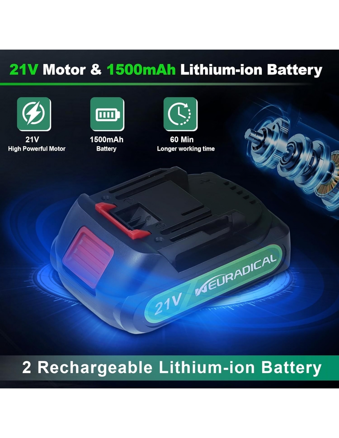 NEURADICAL Tagliasiepi elettrico a batteria da 21 V con 2 batterie ricaricabili