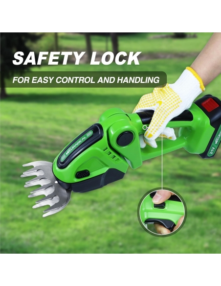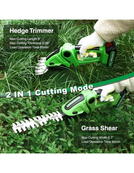 - Sono disponibili 1.2 tipi di lame, cesoie per erba portatili senza fili da 5" e mini tagliasiepi senza fili da 9".