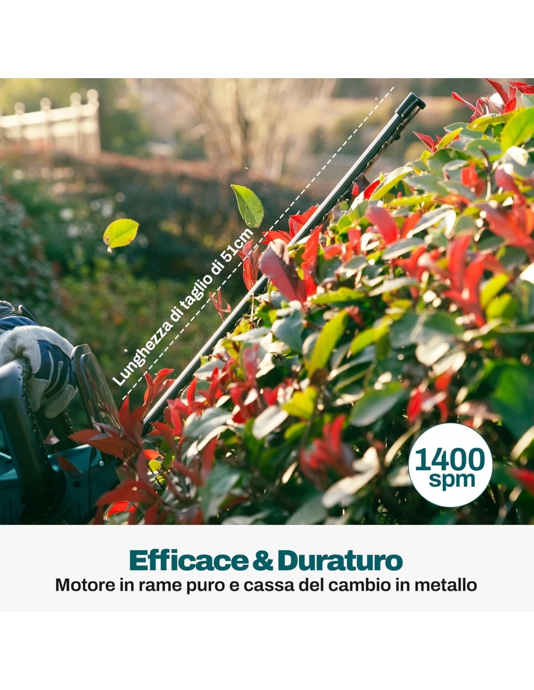 - Taglio efficiente: con motore in rame e ingranaggi in metallo, questo attrezzo da giardino offre una maggiore efficienza e una maggiore durata, per una cura ottimale del giardino.