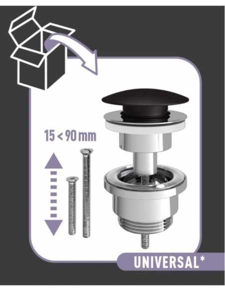 Lo scarico clic-clac Equation con tappo nero ti consente con 1 clic di trattenere o evacuare l'acqua dal lavandino del vostro bagno