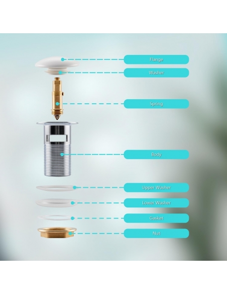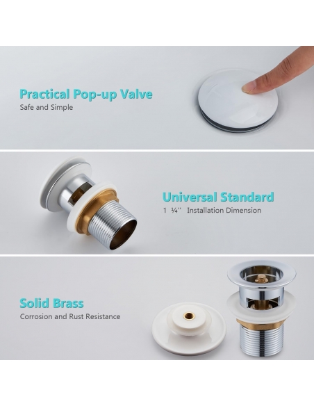 - ✔【Funzione Pop-Up】 Il nucleo a molla in ottone di alta qualità garantisce una buona resistenza dello piletta click clack. È possibile aprire o chiudere rapidamente la tappo scarico con una sola pressione.