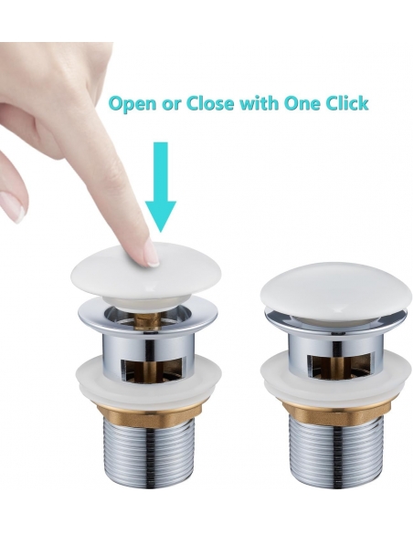 - ✔【Copertura in Ceramica】 Lo piletta lavabo con copertura in ceramica bianca è resistente ai graffi e può prevenire efficacemente la corrosione e lo scolorimento. Si abbina meglio al lavello, è elegante e durevole.