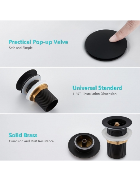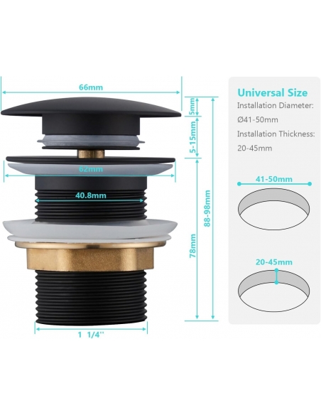 - ✔UNIVERSALE: Lo piletta lavandino ha una dimensione standard di 1 ¼" e si adatta alla maggior parte dei lavabi e dei piani di appoggio. Attenzione: è adatto solo ai lavabi senza foro di troppopieno.