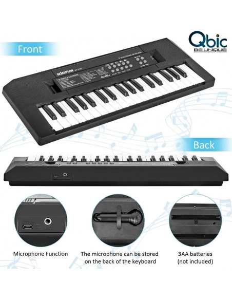 - Il pianoforte a 37 tasti è progettato con 16 demo, 8 canzoni DJ, 2 toni, 4 ritmi, 4 batterie, funzione di registrazione e riproduzione, volume regolabile. Puoi scegliere la melodia che preferisci o suonare musica con i bambini. Inoltre, è dotato anche di un microfono, i bambini possono cantare mentre suonano