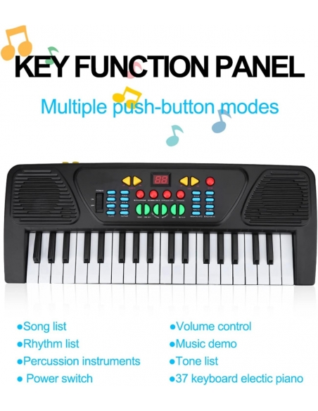 Wakects M3768 Tastiera Elettronica 37 Tasti, Pianola Elettronica Multifunzione con Microfono, Pianoforte per Bambini, Tastiera Pianoforte per Principianti Ragazzi Ragazze
