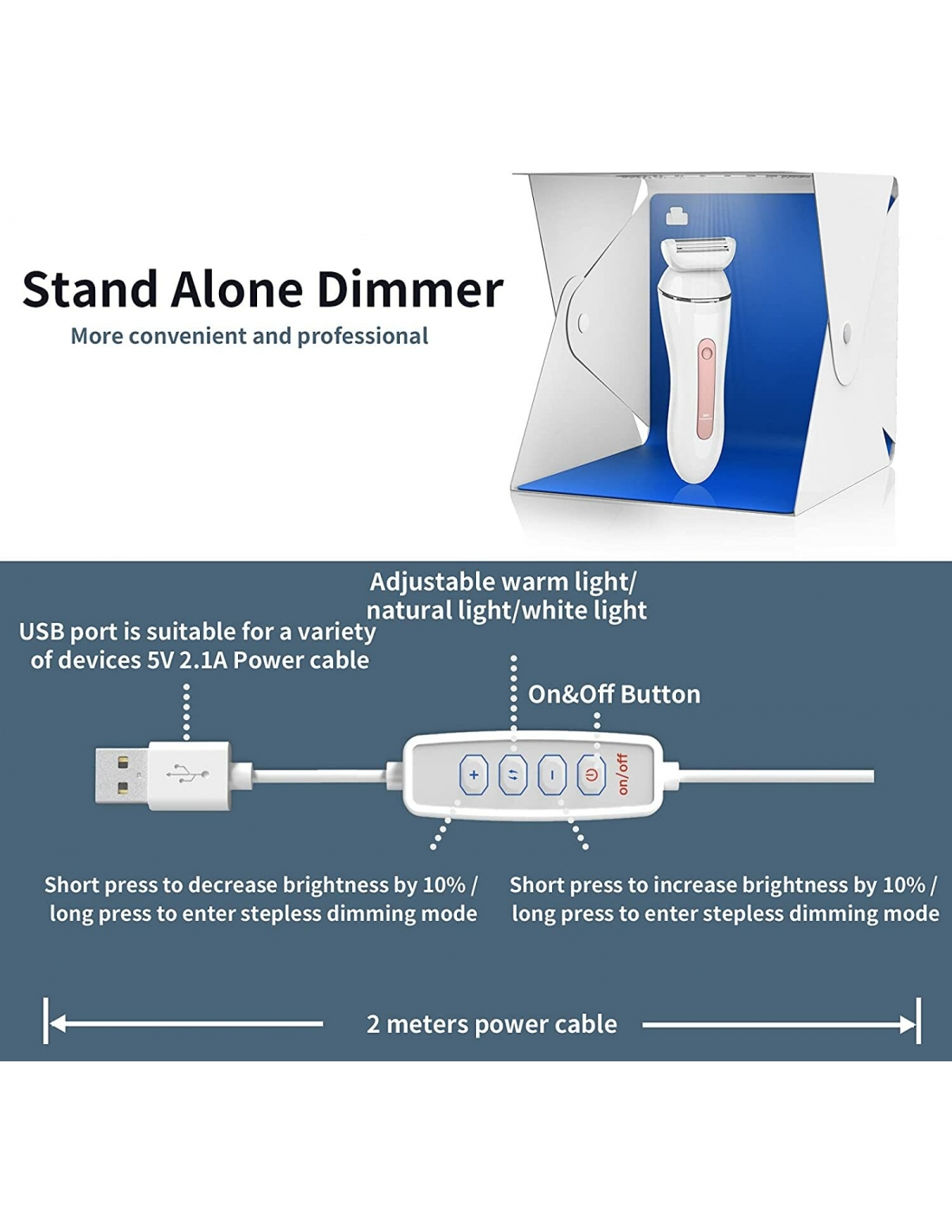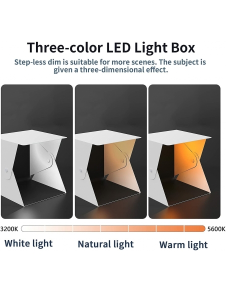 - la scatola da studio ha luce calda, luce naturale e luce bianca. Ci sono tre opzioni di luce comuni, che possono essere regolate direttamente tramite 2musb. La scelta della luminosità può aiutare meglio la fotografia,49 perline di lampada di alta qualità rendono le tue foto più chiare, senza sfarfallio e ombre.