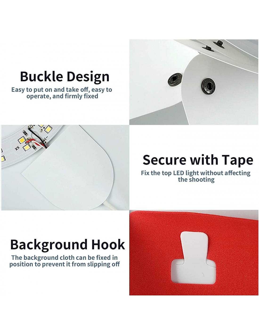 - la scatola dello studio fotografico è realizzata in materiale impermeabile, che migliora la durata del prodotto e può resistere direttamente ai danni del liquido durante il processo di ripresa.
