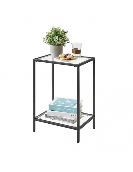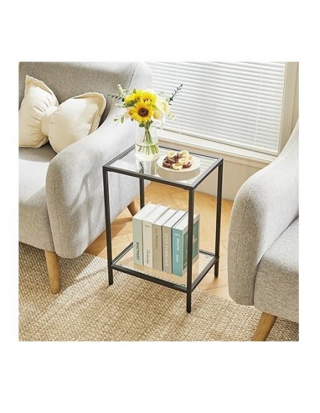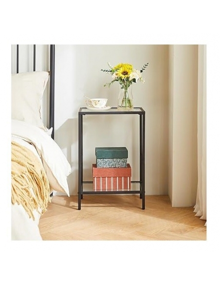 Tavolino da interno a 2 livelli nero porta telefono per camera da letto e divano
