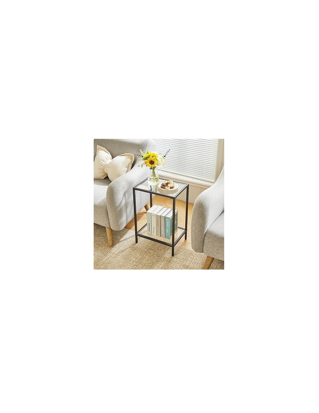 Tavolino YMYNY a 2 livelli, tavolino da caffè, comodino, porta telefono, punto divano, tavolo per soggiorno, camera da letto, corridoio, 38 x 28 x 56 cm, nero HGD002B