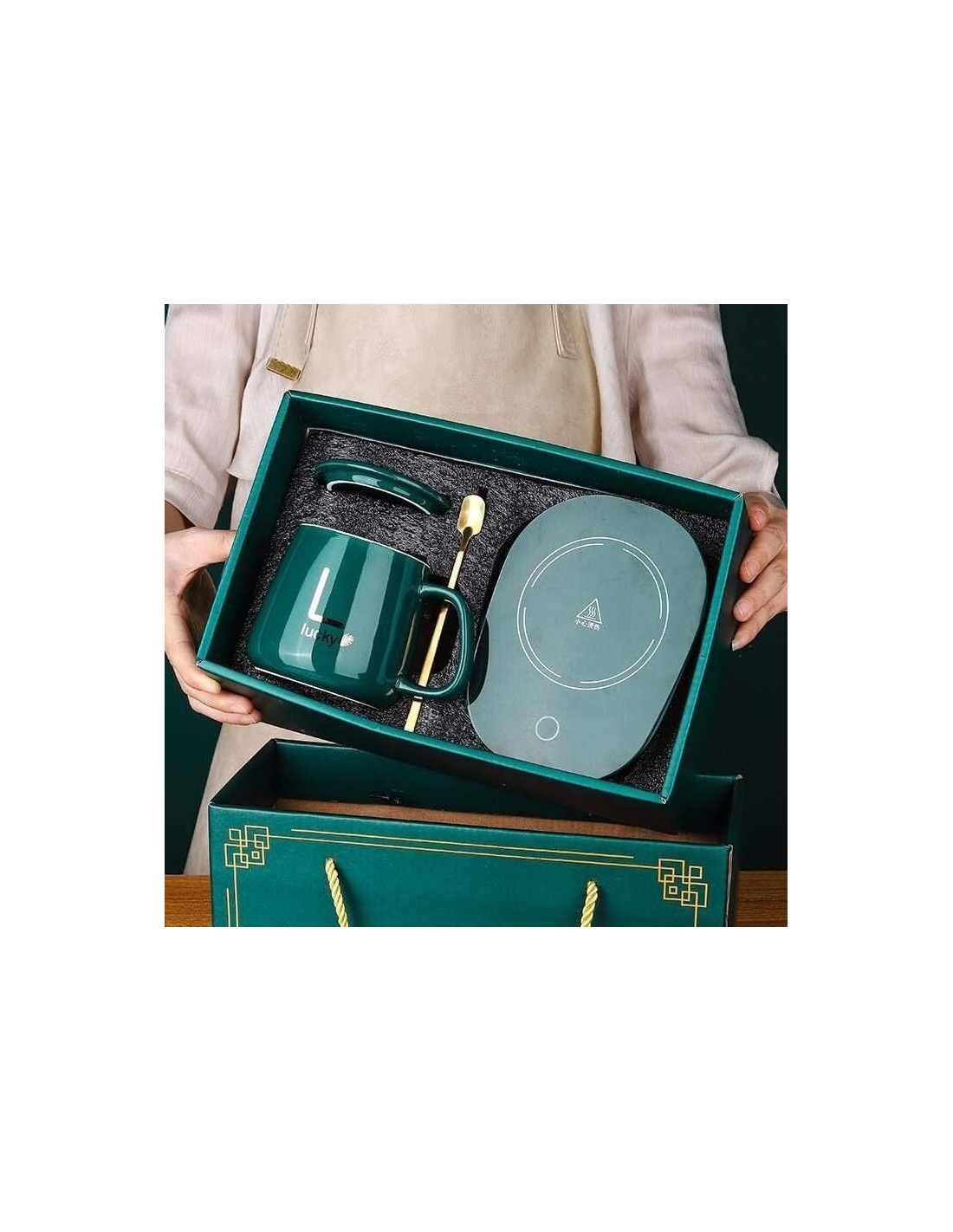 Scalda tazze da caffè, accensione/spegnimento automatico, sottobicchiere elettrico intelligente con tazza in ceramica abbinata e confezione regalo