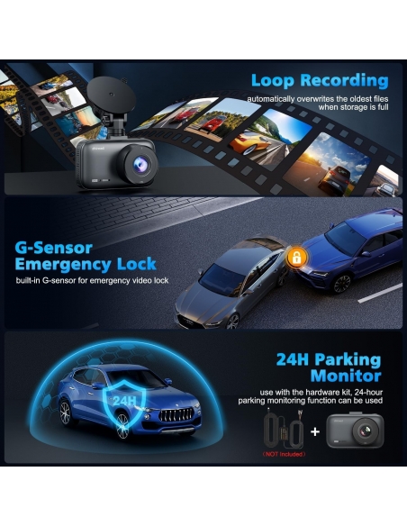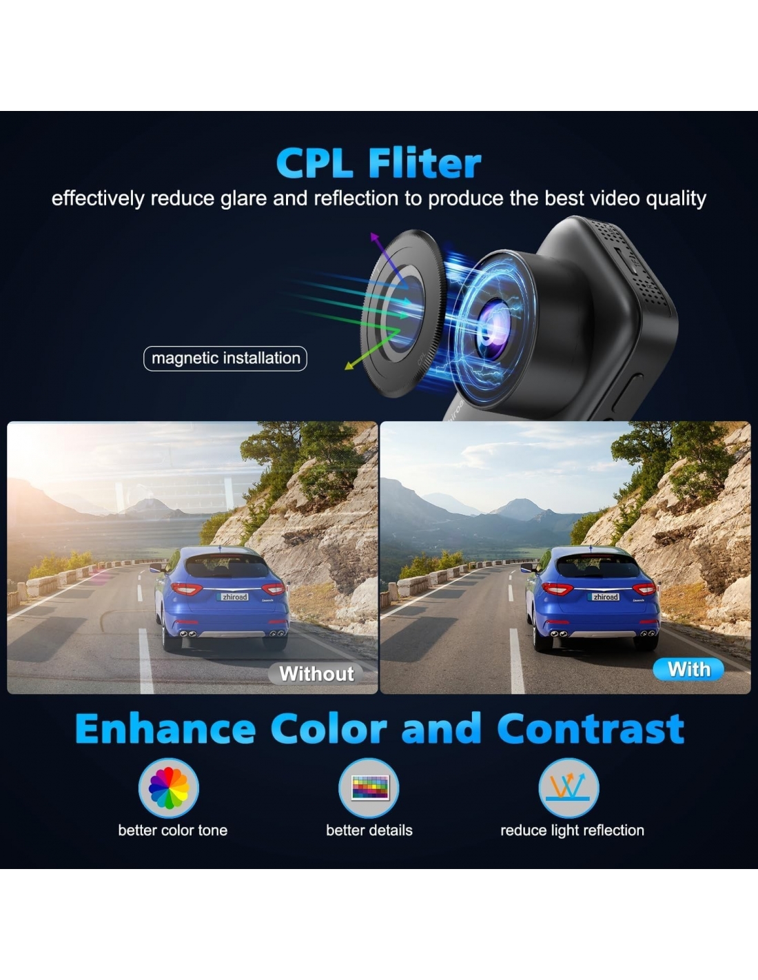 - 【Apertura F1.8 + Filtro CPL】 L’apertura F1.8 consente di catturare più luce, la dash cam auto migliorando la qualità dell’immagine anche in condizioni di scarsa luminosità. Filtro CPL riduce riflessi e abbagliamento, la dashcam migliorando ulteriormente la chiarezza delle immagini, specialmente in situazioni di sole diretto o nelle giornate nuvolose.