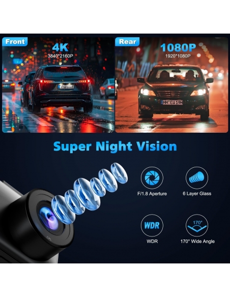 - 【Dual Dash Cam 4K + 1080P】Con una risoluzione ultra alta, la dash cam auto cattura ogni dettaglio con la telecamera anteriore in 4K e quella posteriore in 1080P, anteriore 170° e posteriore 140° grandangolare, garantendo una visione completa e precisa della strada davanti e dietro il veicolo. Ideale per chi cerca la massima protezione in caso di incidenti o imprevisti durante la guida.
