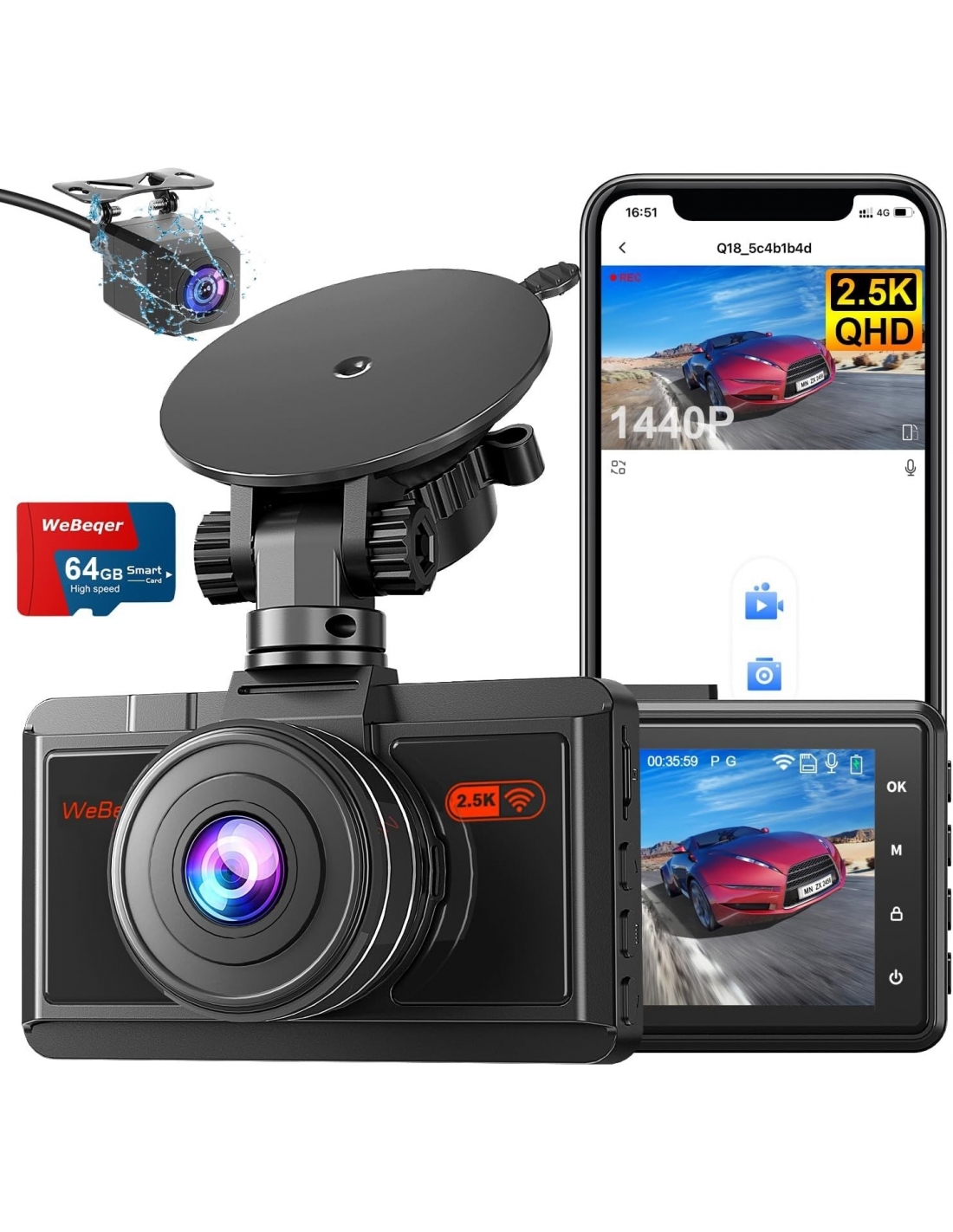 WEBEQER Q18 Dashcam Auto 2.5K+ Dashcam Auto 2.5K+1080P con 64G SD Scheda