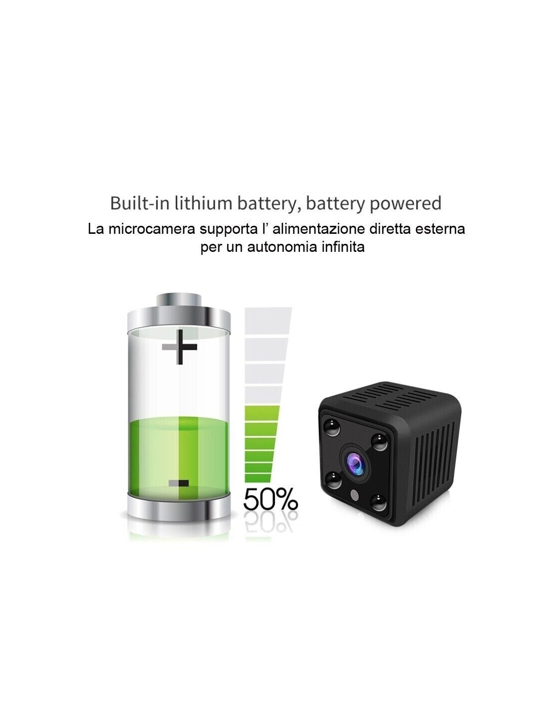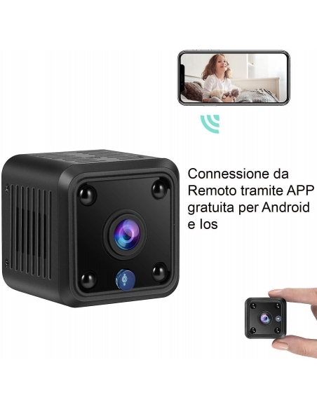 a una cassa in plastica con dissipatore di calore, per evitare i classici surriscaldamenti delle telecamere a modulo wifi, quindi massima stabilita' di connessione internet, massima qualita' visione grazie alla risoluzione 1920*1080p full hd. Questa versione appena arrivata in italia, e' di nuova generazione e elimina tutti i problemi riscontrati nelle vecchie versioni. La telecamera si alimenta esternamente, è possibile connettere batterie power bank oppure direttamente a corrente continua. Dotata di led infrarossi invisibili per una chiara visione sia di giorno che di notte. Supporta micro sd fino a 32gb per più di 24 ore di ripresa continuava. E' dotata di un sofisticato sensore di movimento che ogni volta