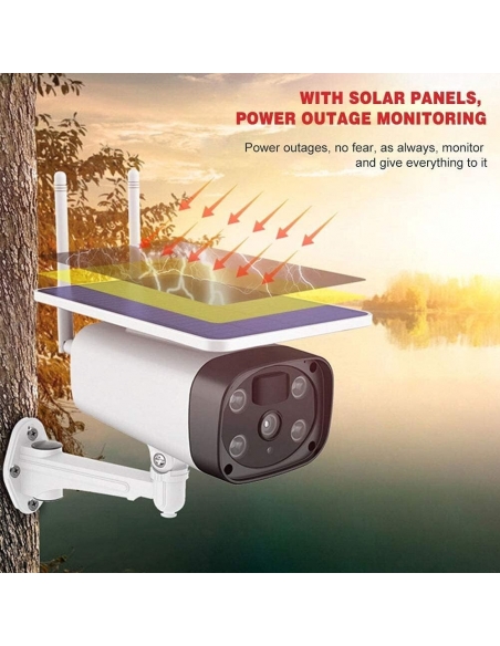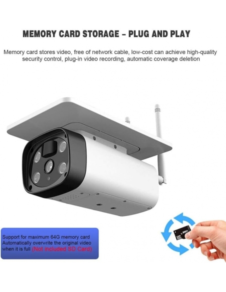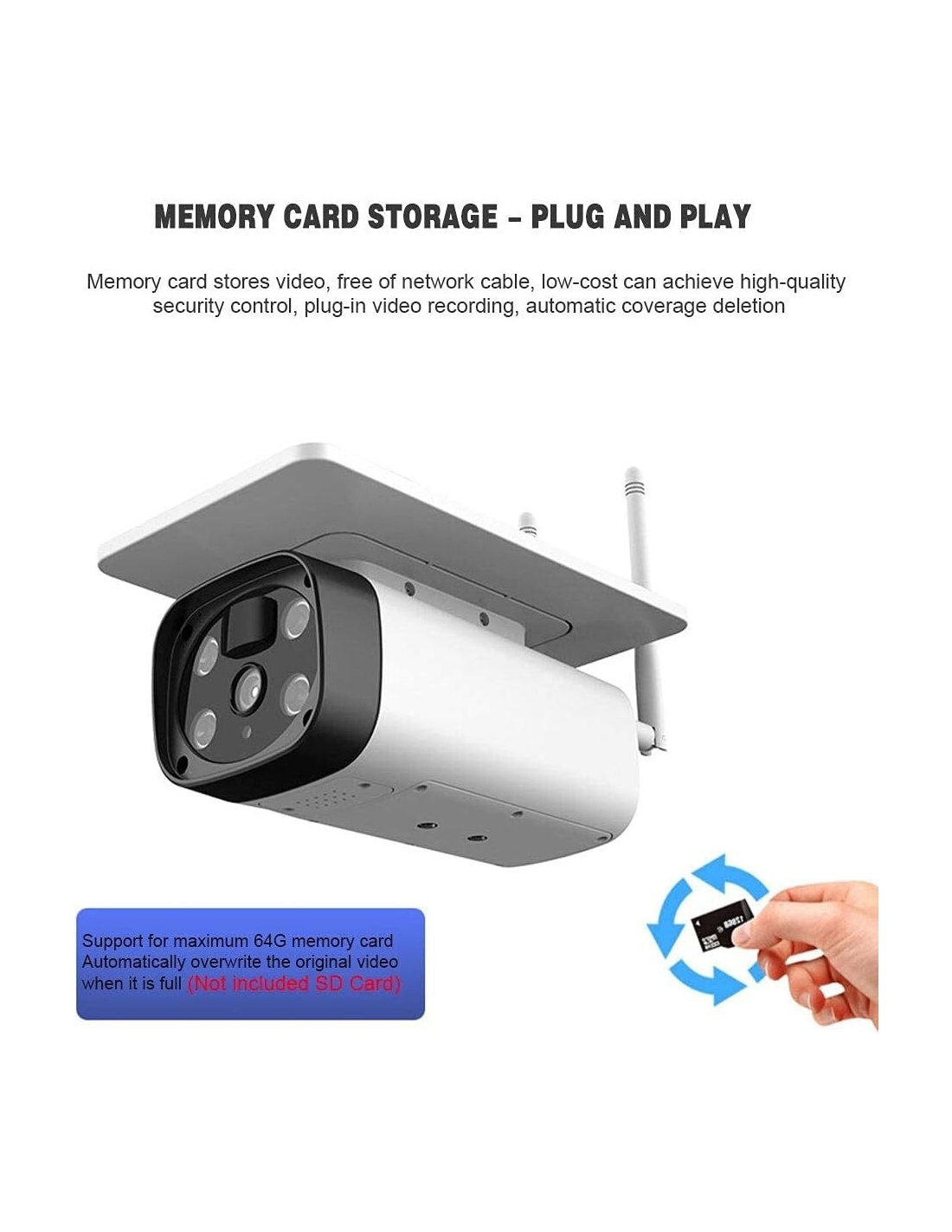 - Energia solare, batteria ad alta capacità: la fotocamera può essere staccata con una batteria ad alta capacità e il pannello solare superiore viene convertito in energia, tramite assorbimento e assorbimento di calore per alimentare la batteria senza collegare l'alimentatore. Navigazione facile.