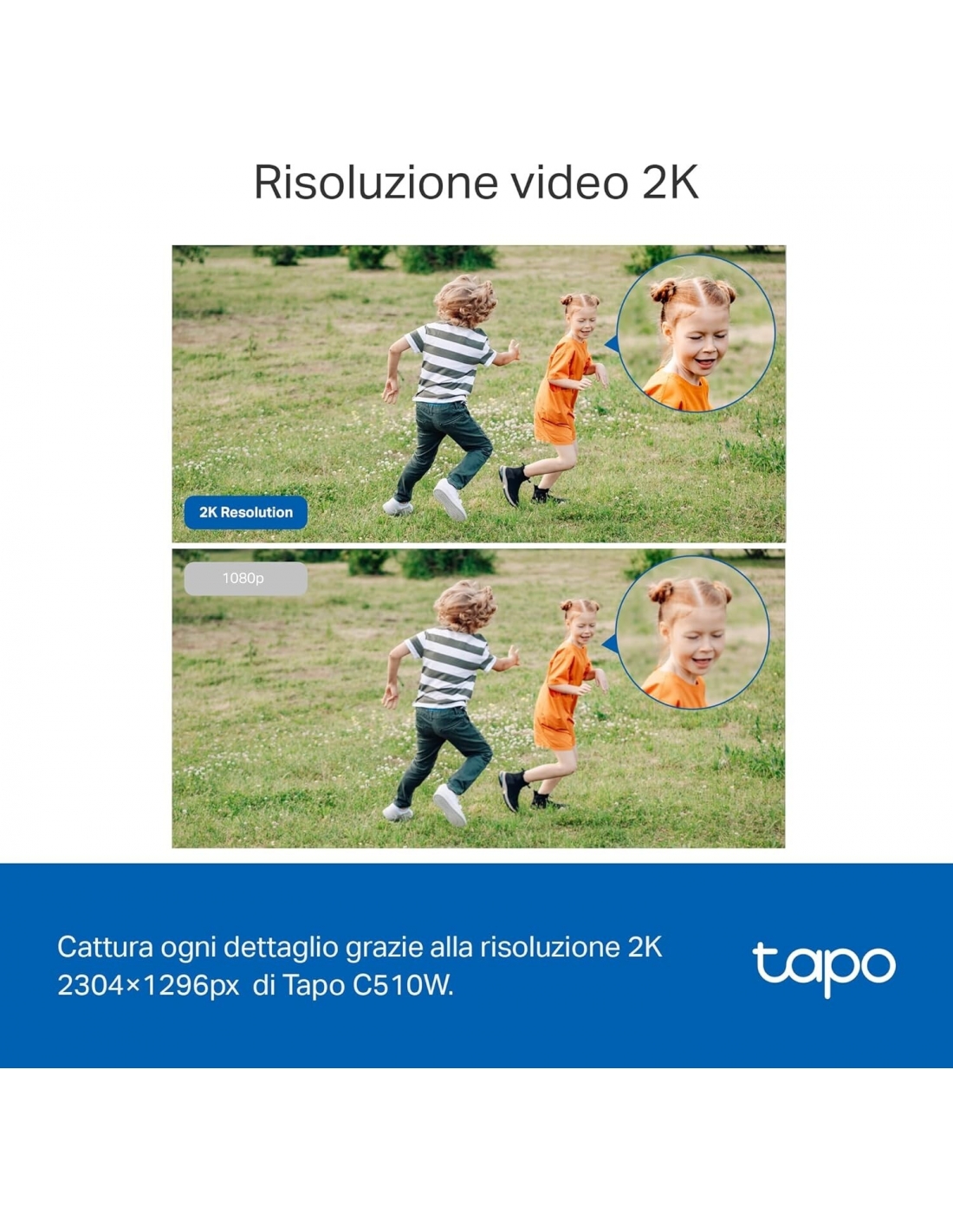 - Risoluzione 2K: con la risoluzione di 2304 × 1296 px, Tapo C510W migliora la tua sicurezza catturando più dettagli rispetto al tradizionale 1080p (1920 × 1080 px)