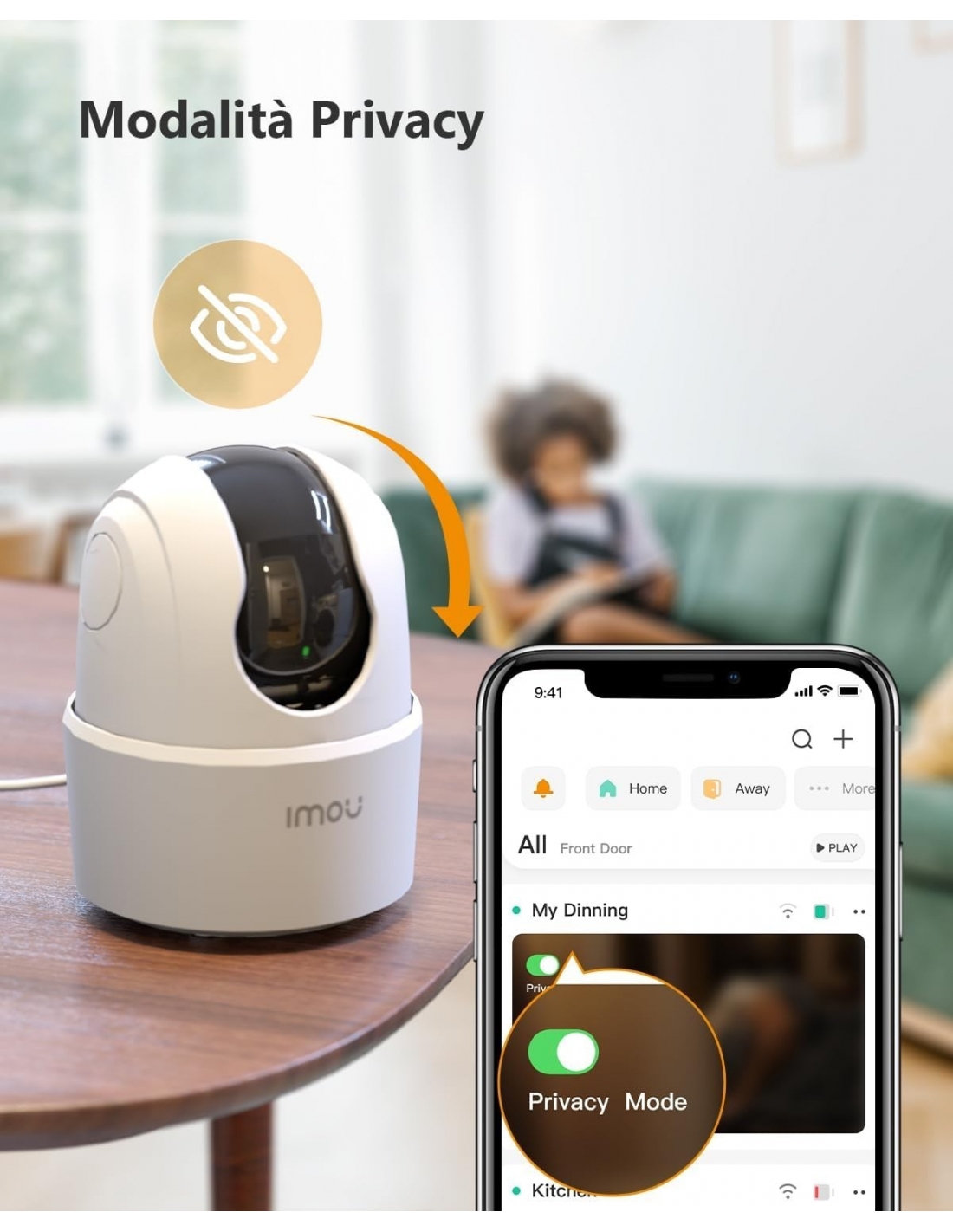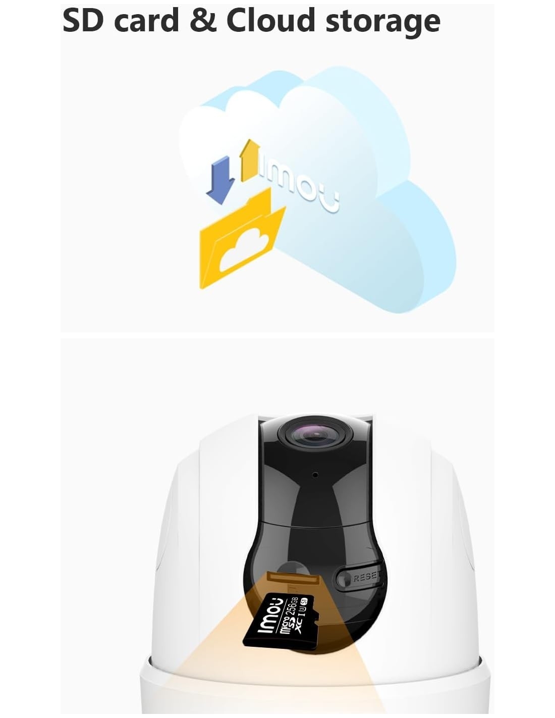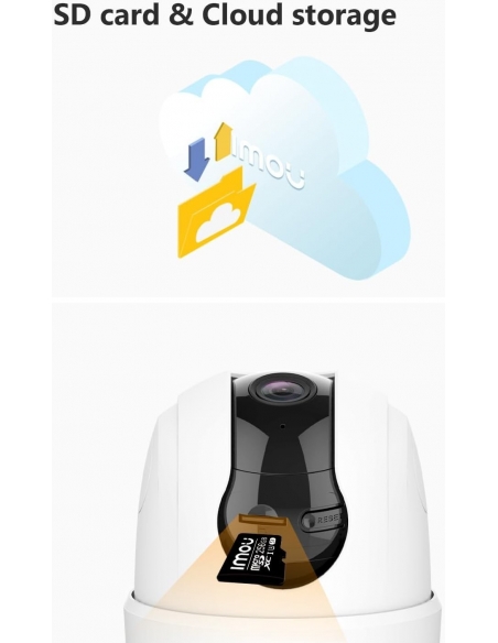 - 【Registrazione & Riproduzione sulla Scheda Micro SD】Con uno slot incorporato (sotto l’obbiettivo) per scheda micro SD (non inclusa), la telecamera da interno può registrare eventi di movimento e salvare clip di movimento nella scheda micro SD (fino a 256 GB). Possiamo riprodurre i video registrati tramite l'app IMOU LIFE sempre e ovunque.