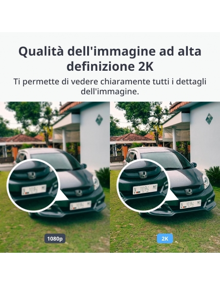 - Ora in 2K, con Visione Notturna a Colori: Grazie all'obiettivo aggiornato da 3MP, la qualità dell'immagine migliora del 100% rispetto a una normale telecamera a 1080P, consentendo di catturare ogni dettaglio all'esterno durante il monitoraggio. La nostra telecamera è inoltre dotata di due faretti luminosi che consentono di registrare a colori anche in condizioni di scarsa illuminazione.