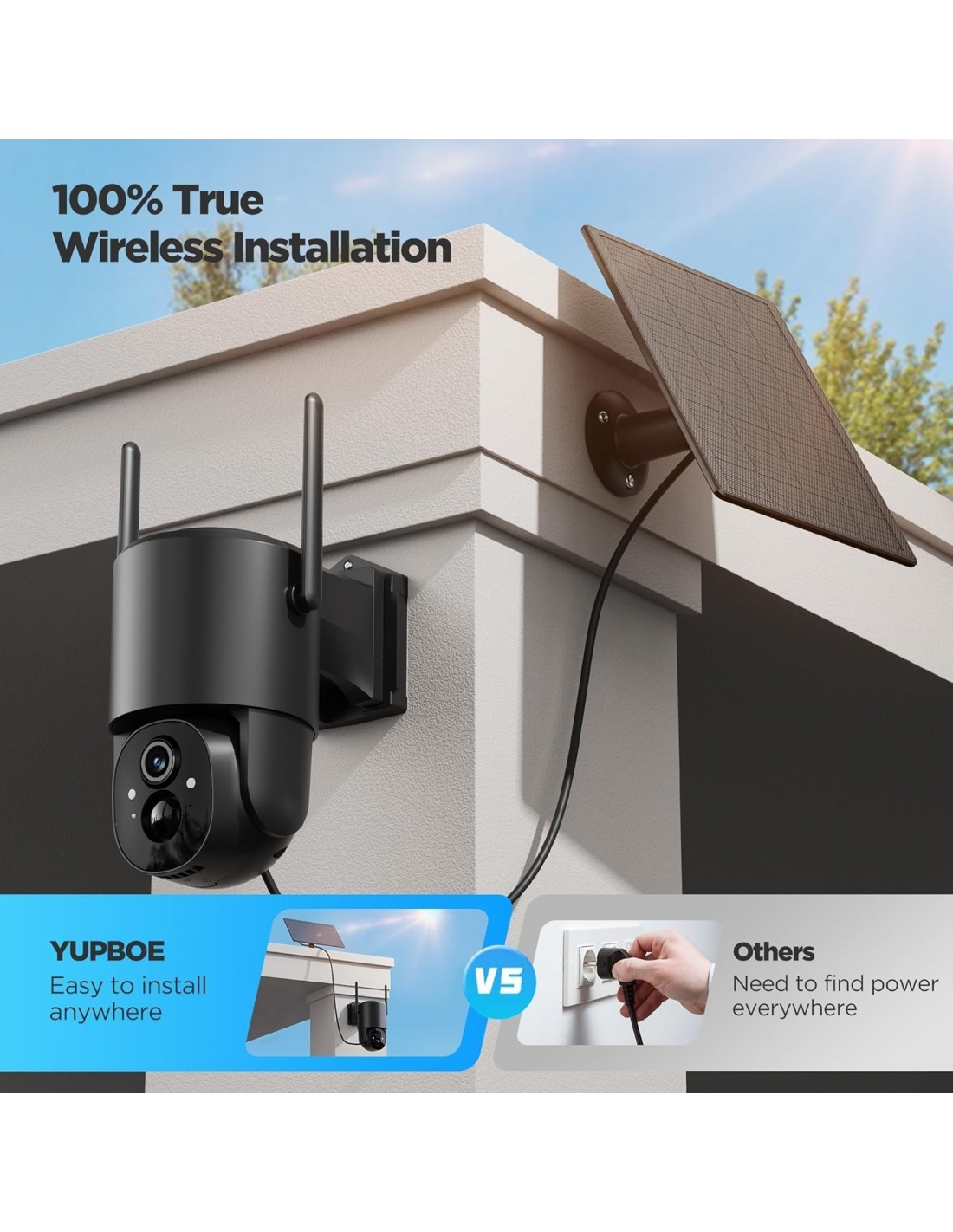 YUPBOE Telecamera PTZ a 360° di sicurezza wireless Wifi per esterni con pannello
