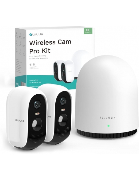 WUUK 2K Telecamere 2x Wifi Esterno Senza Fili, Stazione Base di Archiviazione