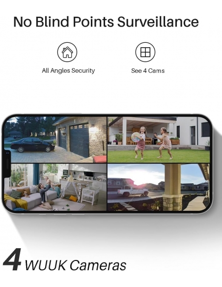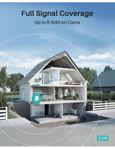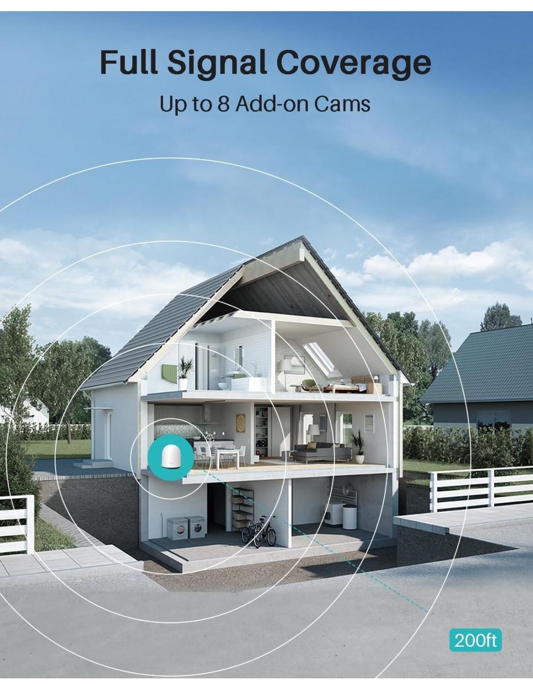 - 【Non è richiesto alcun abbonamento】 WUUK Smart HomeBase dispone di 32 GB di spazio crittografato permanentemente gratuito che può memorizzare tutte le registrazioni degli eventi (circa 6 mesi di LoopRecording). nessun abbonamento richiesto. Allo stesso tempo, la stabilità Wi-Fi è notevolmente migliorata, eliminando le frequenti interruzioni di connessione della fotocamera.