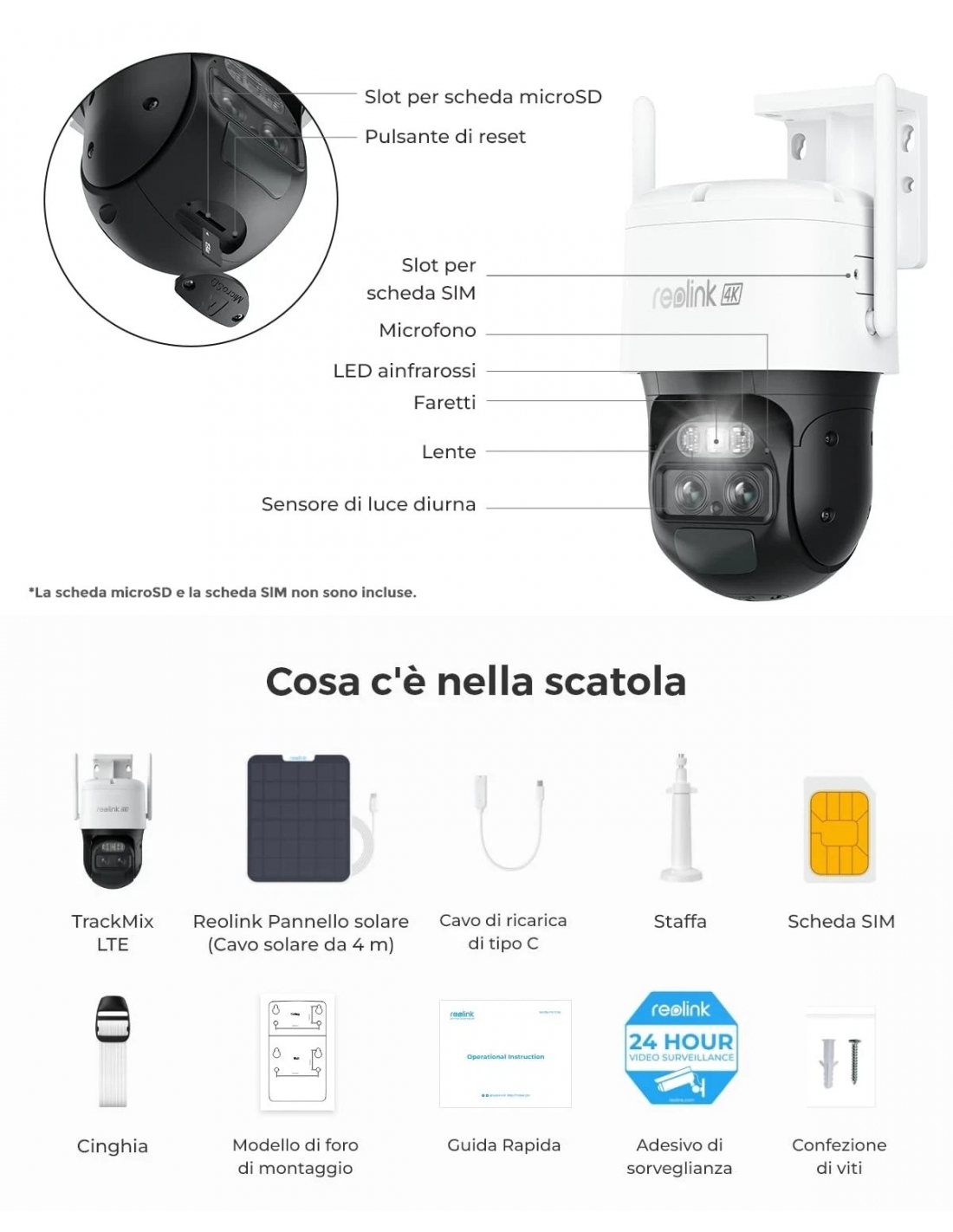 Reolink Trackmix LTE G770 4K 4G Telecamera Sorveglianza Batteria Pannello Solare
