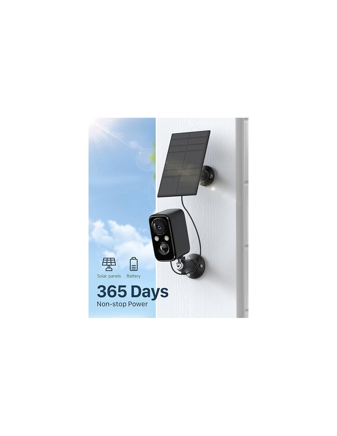 - Telecamera con pannello solare - Davvero wireless: la telecamera di sorveglianza wifi è dotata di un pannello solare per offrirti una vita veramente wireless. Con solo 2 ore di ricarica al giorno, questo IHOXTX telecamera sorveglianza wifi può mantenere la vostra casa tutto l'anno. La fotocamera solare ha una batteria con una capacità di 5200mAh. Anche senza luce solare, può funzionare da 1 a 3 mesi. (Nota: la telecamera di sorveglianza wifi non supporta il WiFi 5G).