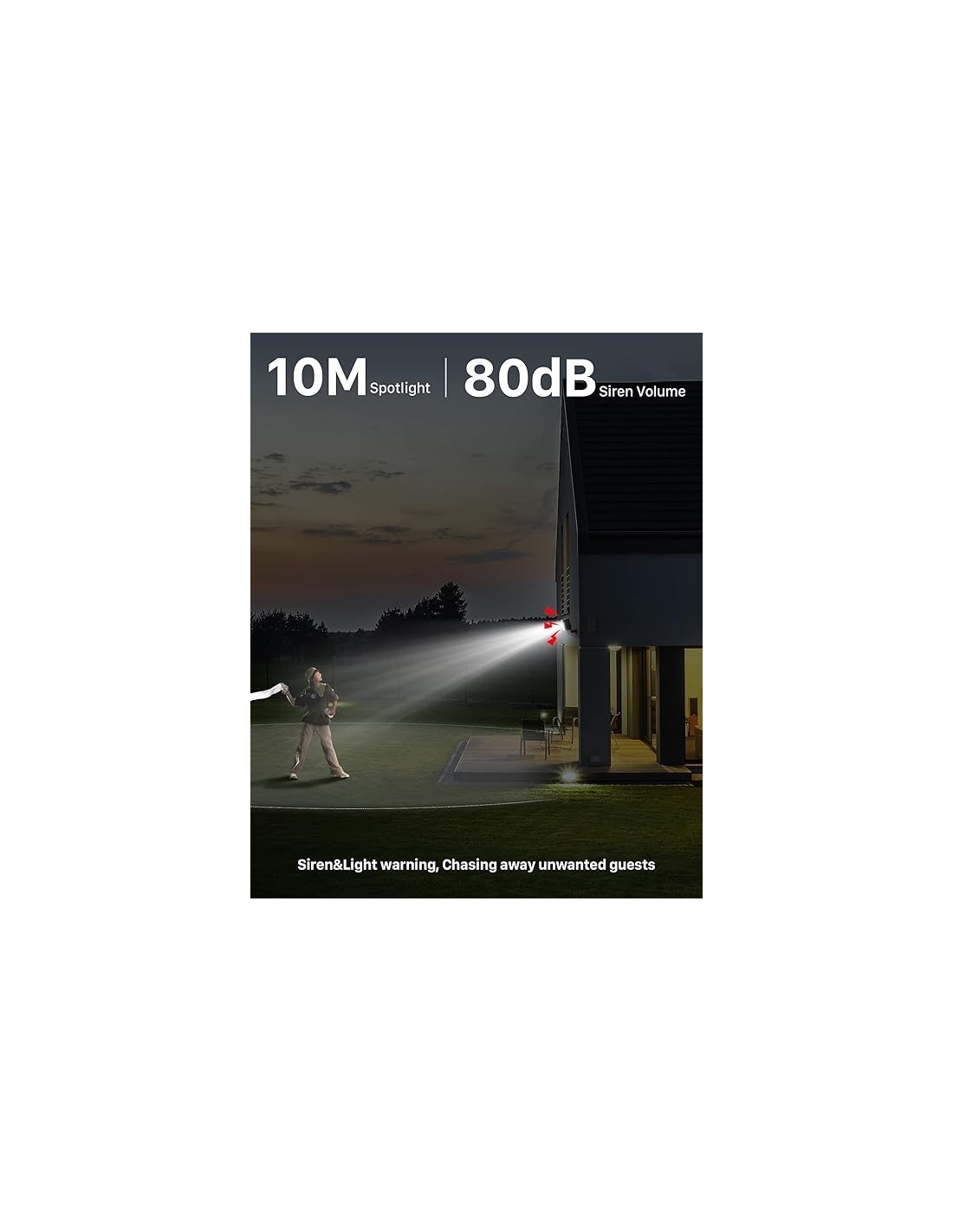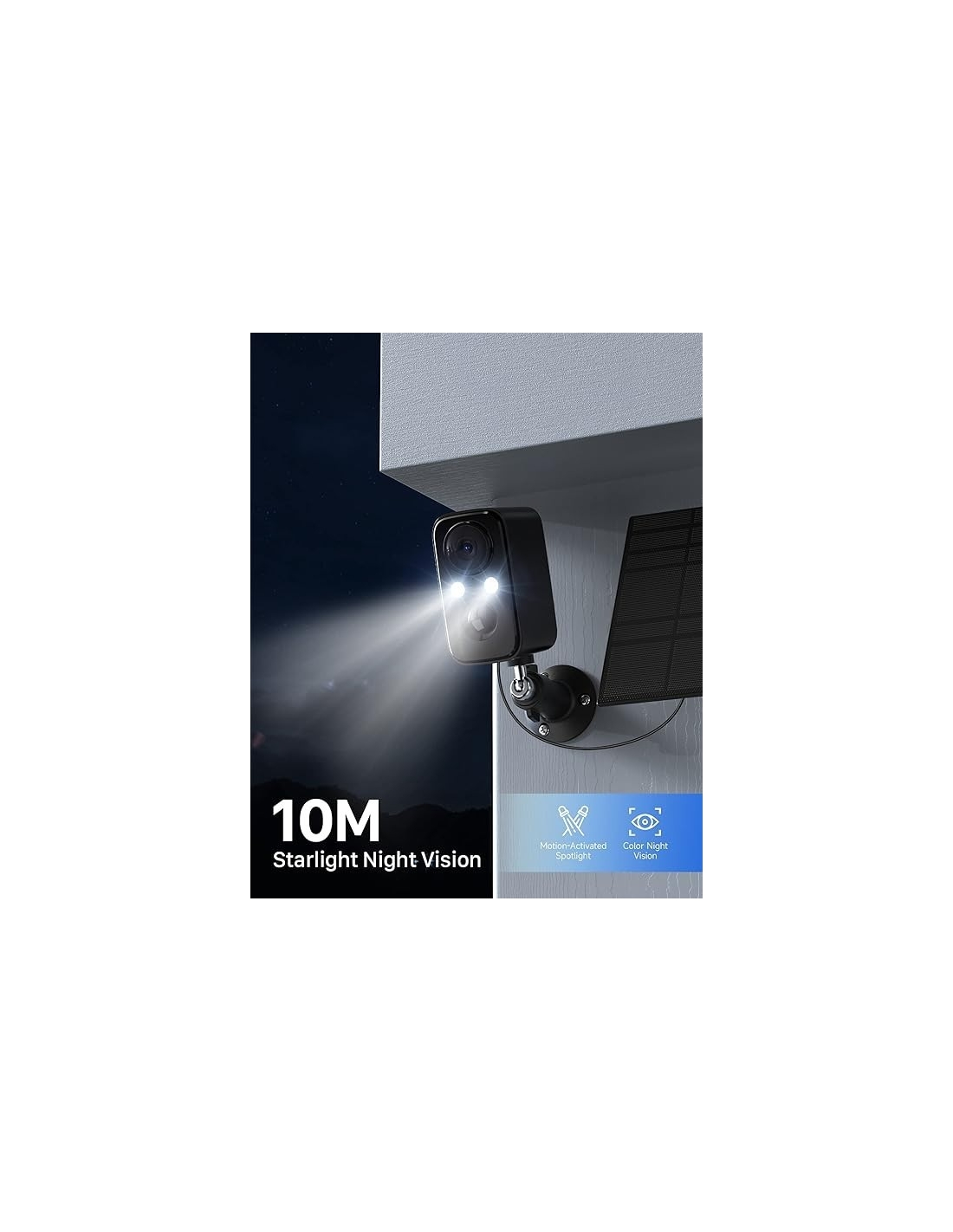 - Super Vision Notturna Colore - Visione potente】 Quando si attiva la funzione di allarme acustico e luminoso o si seleziona la visione notturna intelligente in modalità visione notturna, la telecamera di sorveglianza wifi esterna wireless accende automaticamente il flash quando rileva un movimento. E genera automaticamente un'immagine a colori. Se si sceglie la visione notturna a colori in modalità visione notturna, la fotocamera accenderà continuamente il flash di notte.