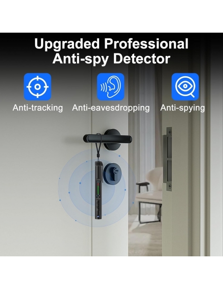 - 【Rilevatore Anti-Spy】Il rilevatore di telecamere spia consente di proteggere la privacy e la sicurezza rilevando con precisione telecamere spie, ascolti clandestini, telecamere wireless stenopeiche, telecamere nascoste a infrarossi, tracker GPS e molto altro ancora. Previene efficacemente le violazioni della privacy in vari luoghi come hotel, sale riunioni, veicoli, cabine di prova