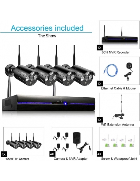 REIGY P2P 3MP Kit Videosorveglianza Wifi Esterno con Registratore Audio