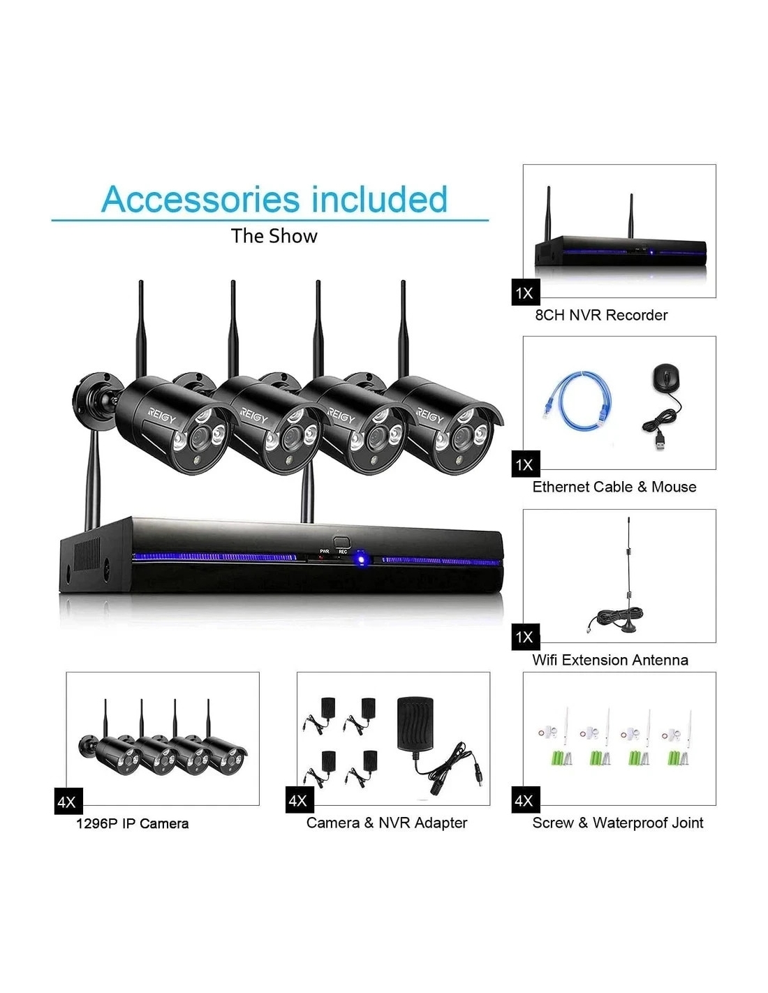 - 【1296P Full HD e Visione Notturna】Sistema di sicurezza REIGY con 4pcs 1296P HD telecameras, streaming live di ciò che sta accadendo dentro e intorno alla tua casa, anche di notte, puoi visualizzare dettagli più nitidi e luminosi.