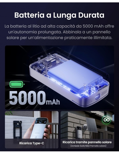 SwitchBot Smartvideo Videocitofono WiFi con Schermo a Colori da 4,3'', 2K Video Campanello con grandangolo di 165°, Citofono Senza fili da Esterno, 5000 mAh, Audio Bidirezionale, Compatibile Alexa