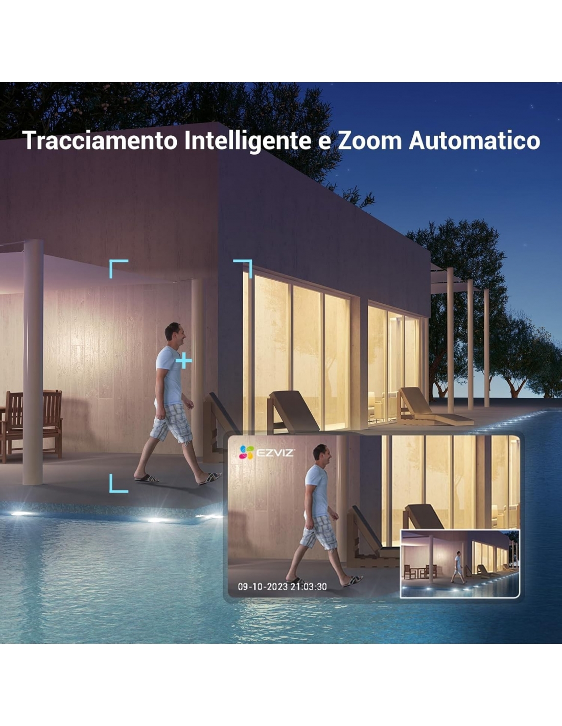 - 【Risoluzione 2K+ & Visione Notturna a Colori】EZVIZ telecamera wi-fi esterno C8c acquisisce informazioni da tutte le direzioni con una risoluzione 2K+, in modo da poter vedere il quadro generale dell'area protetta senza perdere i piccoli dettagli. Rendendo tutto vividamente chiaro anche di notte, il C8c 2K+ fa in modo che nessuno possa intrufolarsi facilmente sotto la copertura dell'oscurità.